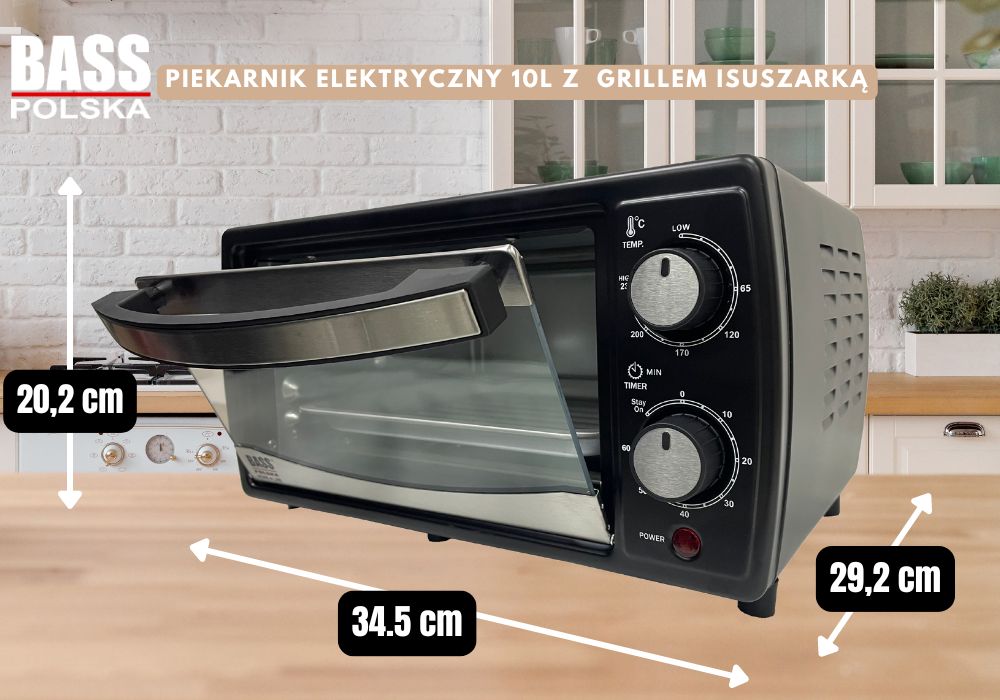 Bass Polskan sähkökäyttöinen vapaasti seisova uuni on monipuolinen laite, jonka avulla voit paistaa kakkuja, leipää, kuivata vihanneksia ja hedelmiä sekä grillata.