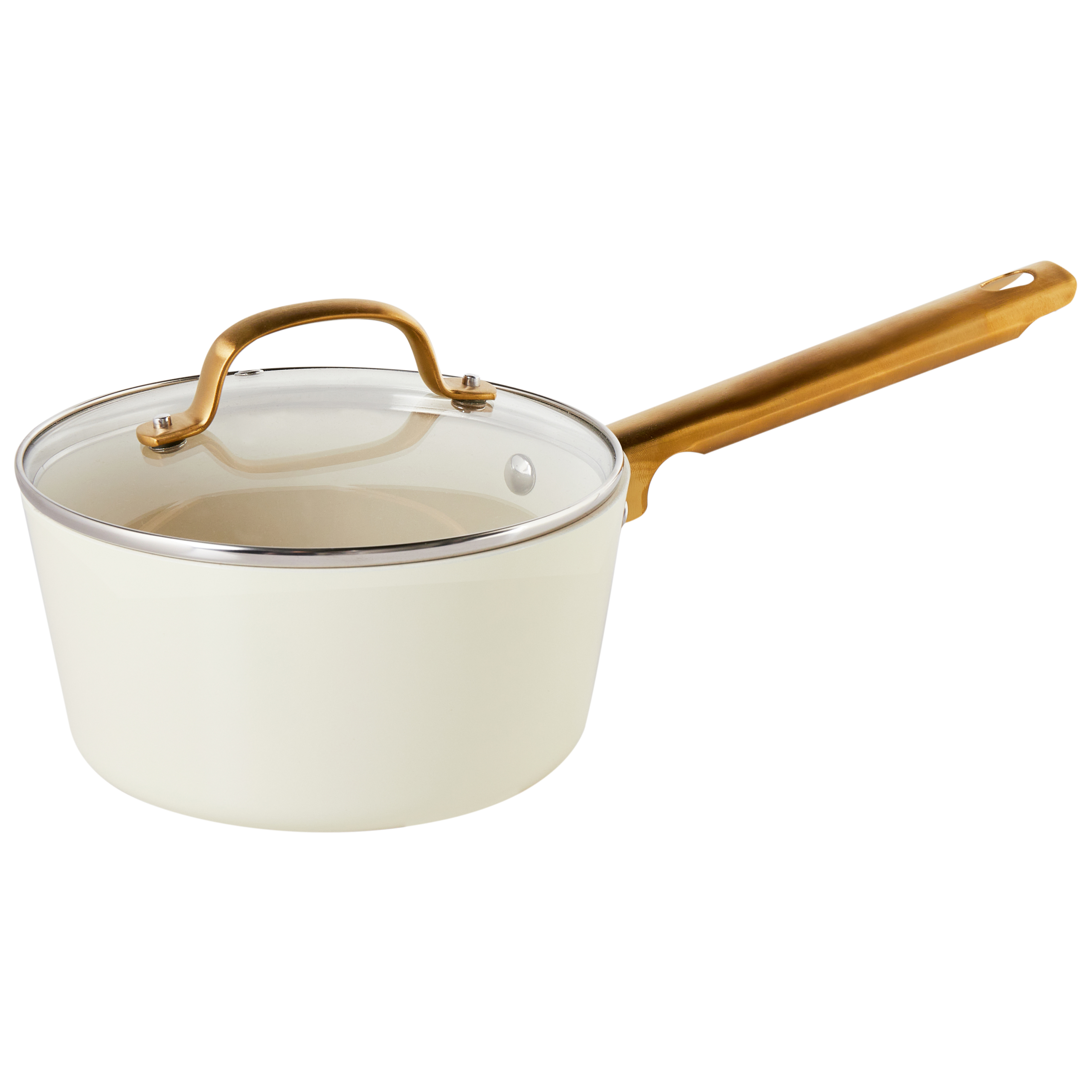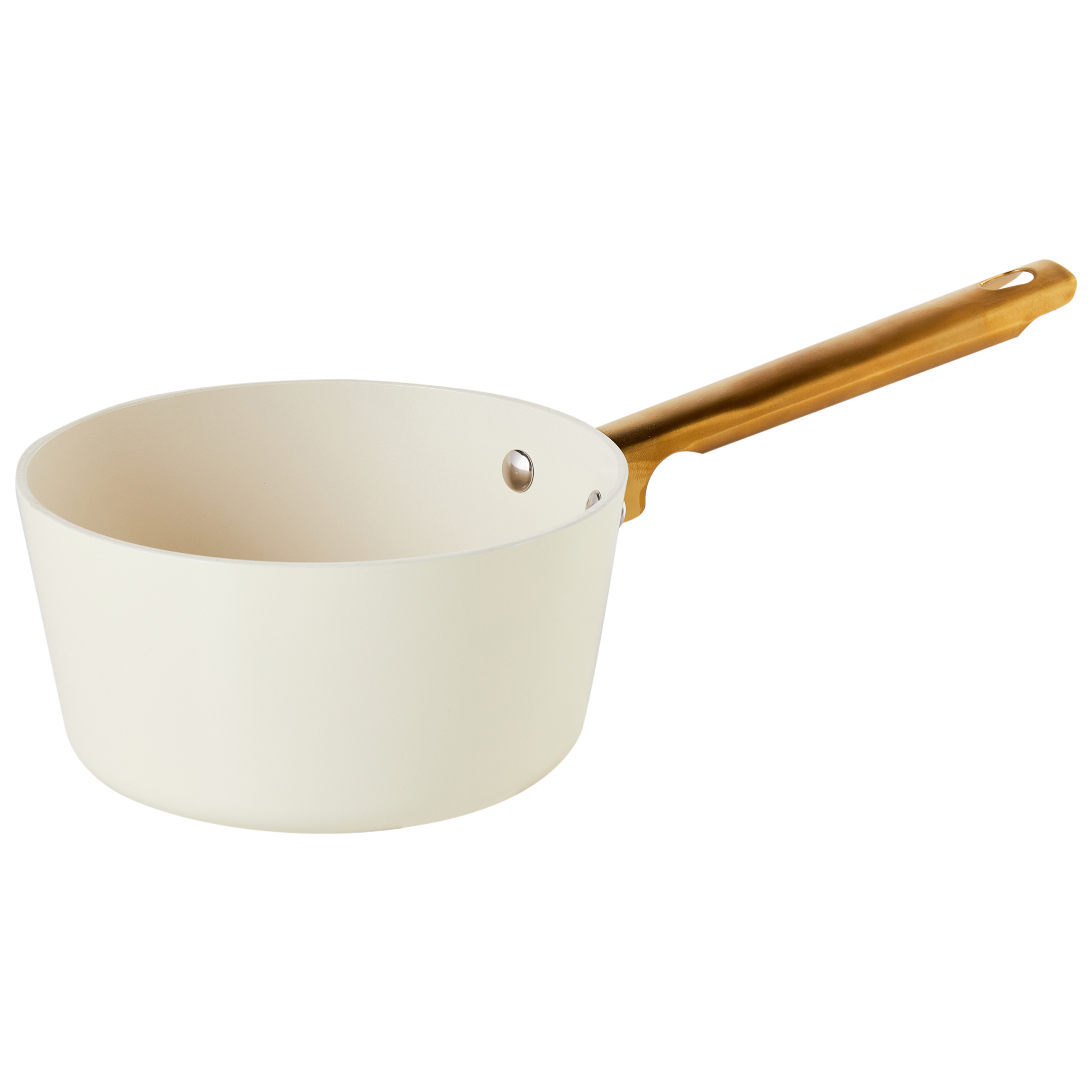 Kymmenen keittoastian setti tarttumattomilla pinnoilla. Tuo keittiöön nykyaikaista eleganssia tällä ajattoman luonnonvalkoisella 10-osaisella keittoastiasetillä, jonka kahvat ovat tyylikkään kullanväriset. Settiin kuuluu kaksi kattilaa, keittokasari ja paistokasari, joista jokaisessa on höyryaukolla varustettu lasikansi, sekä kaksi paistinpannua – täydellisiä arjen ruoanlaittoon. Ne on valmistettu kevyestä ja kestävästä alumiinista, mikä takaa nopean ja tasaisen lämmön jakautumisen. Tarttumaton keraaminen ILAG®-pinnoite tarjoaa terveellisen keittopinnan, kestää tahroja ja naarmuja, on helppo puhdistaa sekä vapaa haitallisista kemikaaleista, kuten PFAS- ja PTFE-yhdisteistä. Keittoastiat sopivat kaikille liesityypeille, myös induktiolle, ja ovat täysin uuninkestäviä, joten ruoka voidaan valmistaa ja paistaa samassa astiassa vaivattomasti. Mukavat ruostumattomat teräskahvat varmistavat tukevan otteen. Astiat ovat myös konepestäviä, mikä lisää käyttömukavuutta. Setti on kaunis ja käytännöllinen lisävaruste jokaiselle kotikokille.
