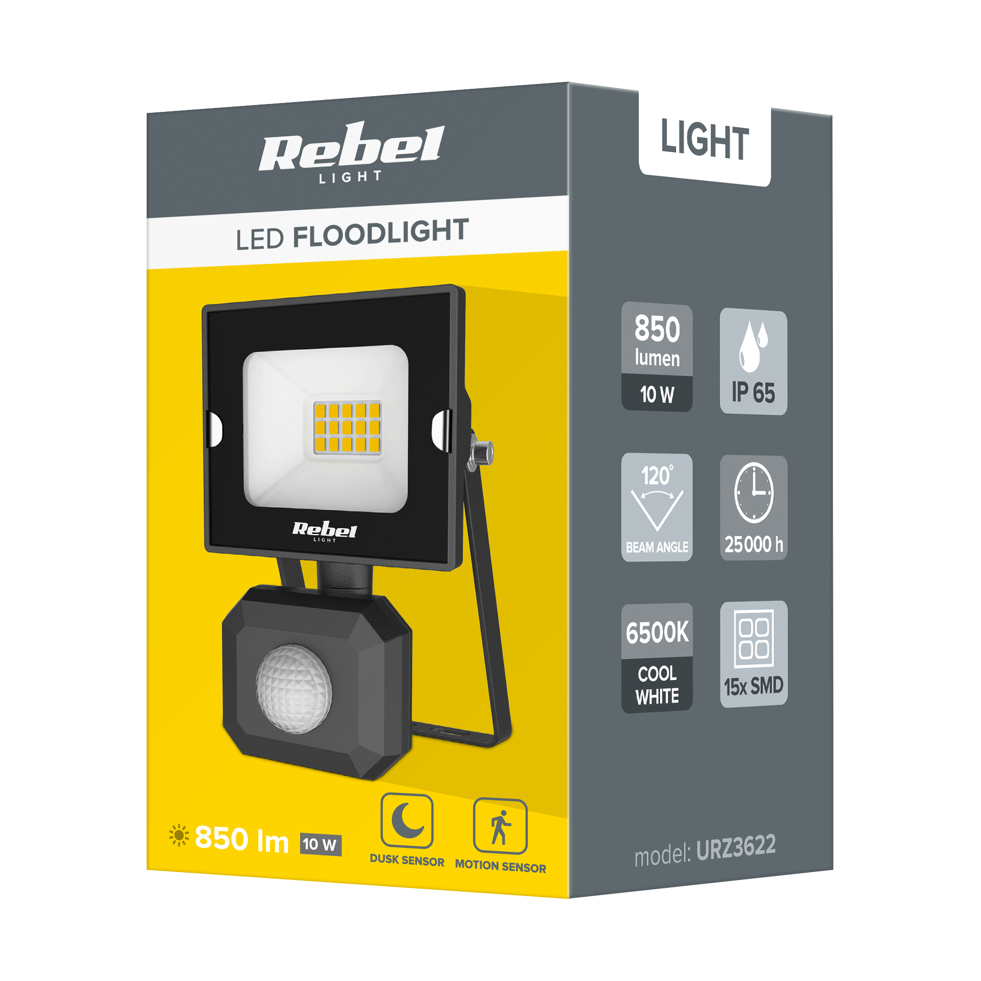 10 W Rebel LED-kohdevalaisin hämärä- ja liiketunnistimella 6500K 230V
