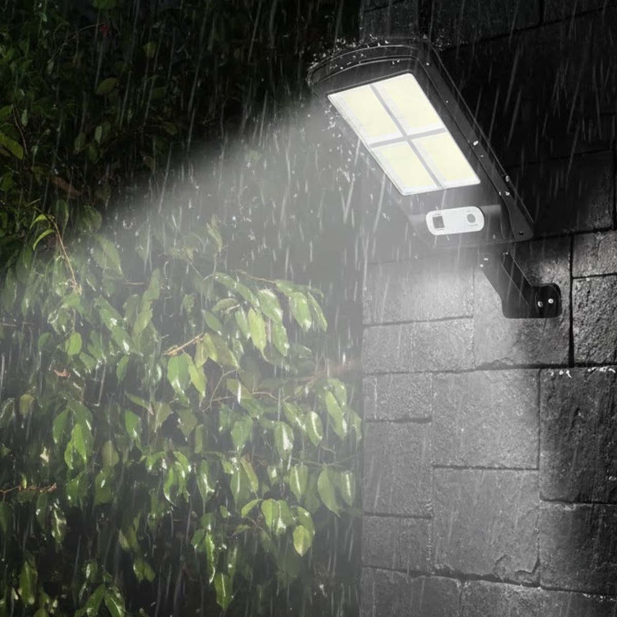 Tämä IPX4-luokan vedenpitävä 10W LED-aurinkovalaisin, jossa on liiketunnistin ja kaukosäädin, on ihanteellinen puutarhan, terassin, ajotien tai sisäänkäynnin turvaamiseen. Sen liiketunnistin aktivoi valon automaattisesti, kun henkilö lähestyy, ja kaukosäätimellä voit valita kolmen valaistustilan välillä. Integroidulla aurinkopaneelilla ja 3,7 V:n akulla varustettu valaisin antaa valaistusta 6-12 tuntia.