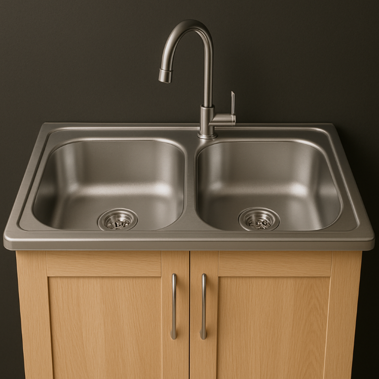 Kaksikulhoinen pesuallasilman poistoa, erittäin helppo asentaa. Pesualtaassa on sileä rakenne ja mukana tulee sifoni. Tuote on valmis asennettavaksi.