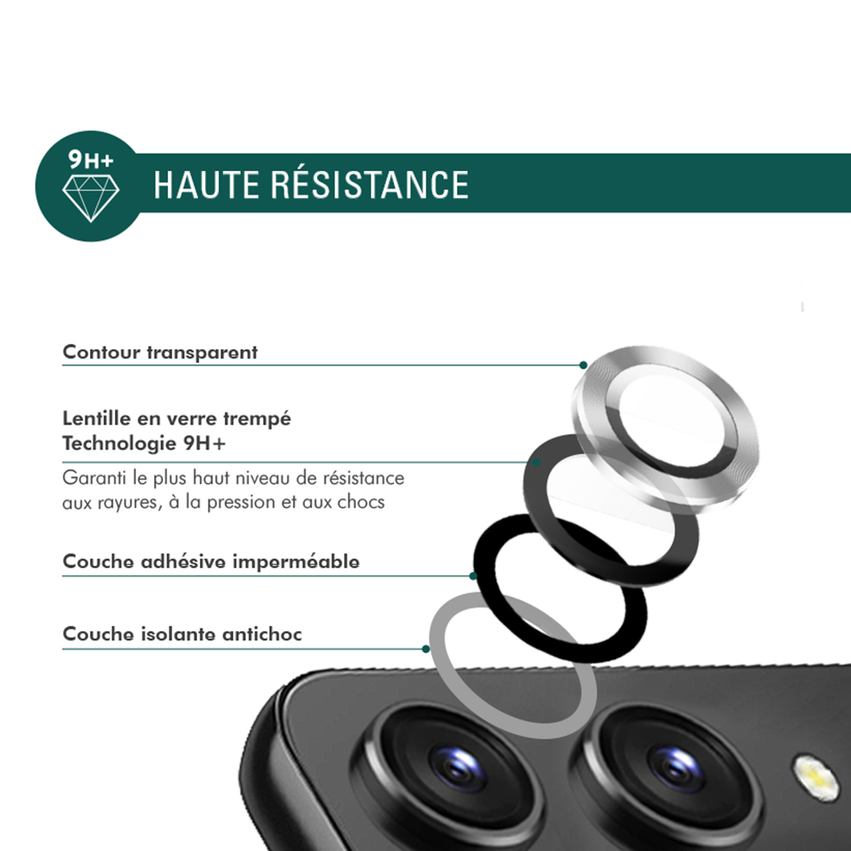 Nämä 2 Force Glass -kameran linssinsuojat Galaxy Z Flip6:lle on suunniteltu käyttäen korkealaatuista karkaistua tasolasia. Ne koostuvat 9H+-kovuustekniikan lisäksi useista kerroksista, kuten vedenpitävästä liimakerroksesta ja iskunkestävästä eristekerroksesta, mikä tekee niistä naarmuuntumattomia ja paineenkestäviä. Räjähdyssuojattu rakenne auttaa välttämään vaaralliset sirpaleet, jos lasiin kohdistuu voimakkaita iskuja.