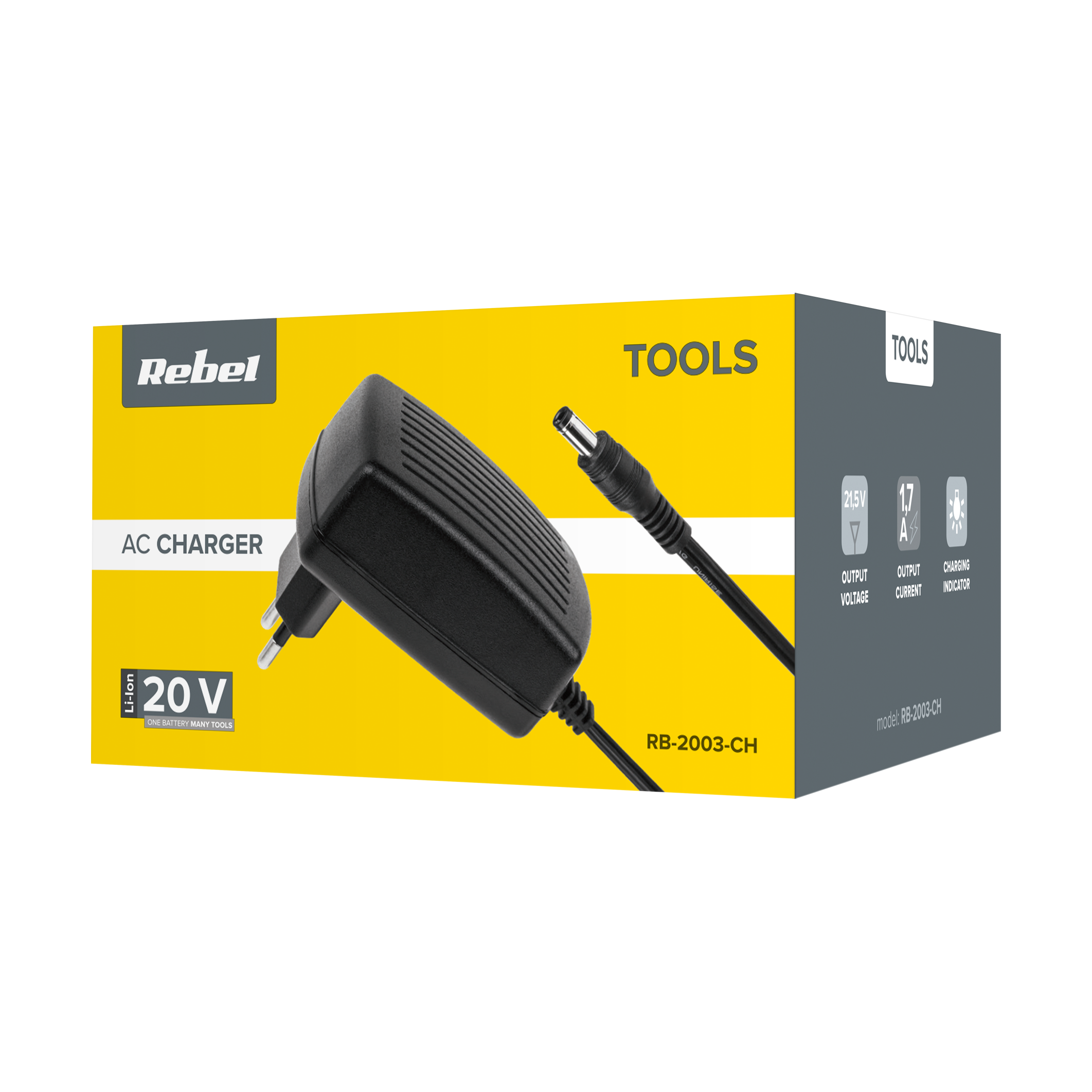 Rebel Tools RB-2003-CH -laturi on suunniteltu RB-2001- ja RB-2002-akuille. Tämä varmistaa täydellisen istuvuuden ja täyden lataustehon.