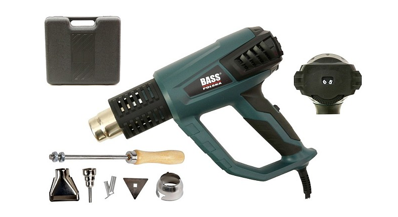 Bass Polskan sähkökäyttöinen muovilämpöpistooli osoittautuu korvaamattomaksi esimerkiksi: huonekalujen viilujen poistoon, PVC-vääristymien poistoon, asennusten taitosten tasoitukseen, kalvojen, muovien liimaukseen, maalien, tarrojen poistoon, olkien, bitumin liuottamiseen jne.
