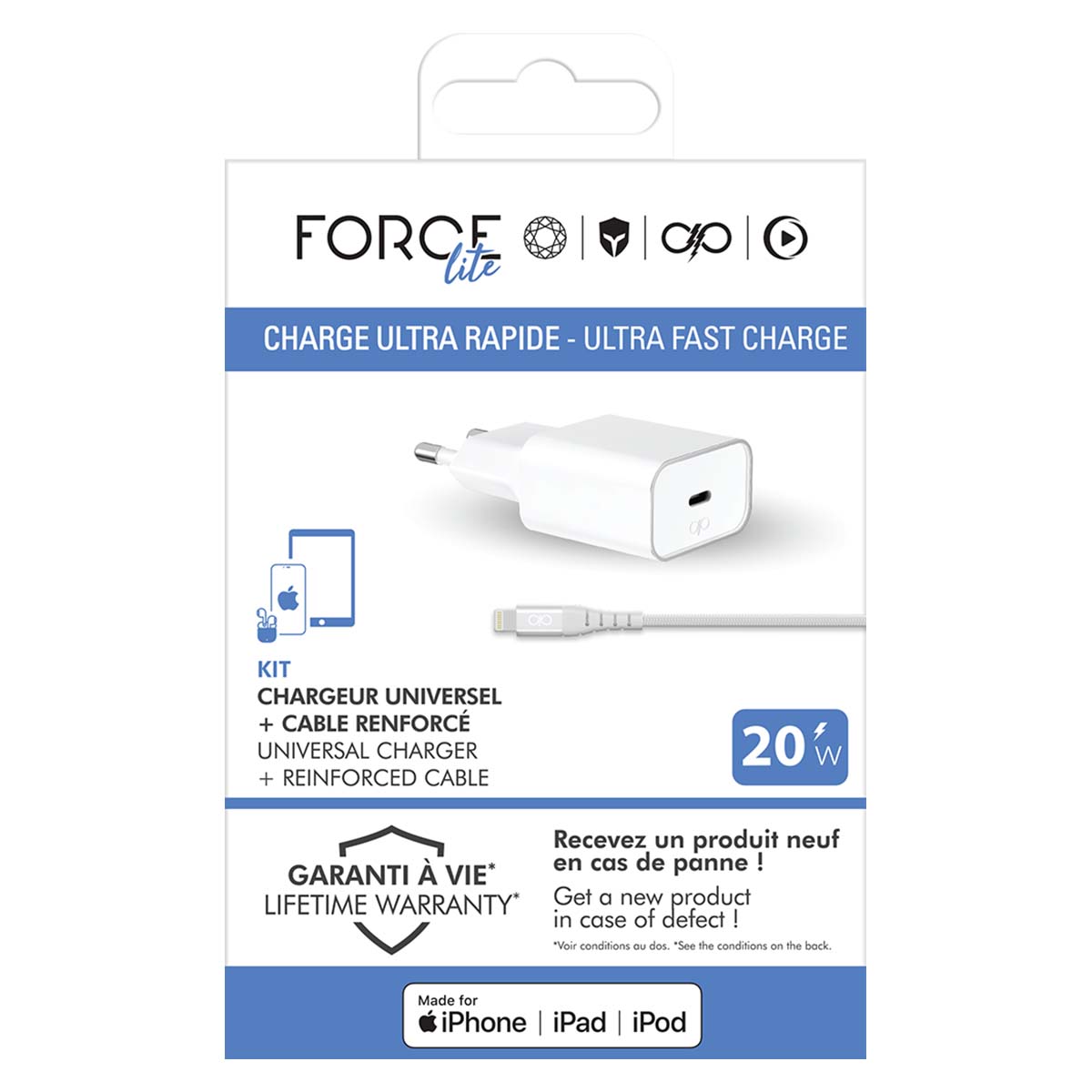 Tämä paketti sisältää 20 W:n sisäisen laturin ja USB-C/Lightning-kaapelin. Laturi takaa optimaalisen latausnopeuden puhelimellesi. USB-C-kaapelia voidaan käyttää tiedonsiirtoon.