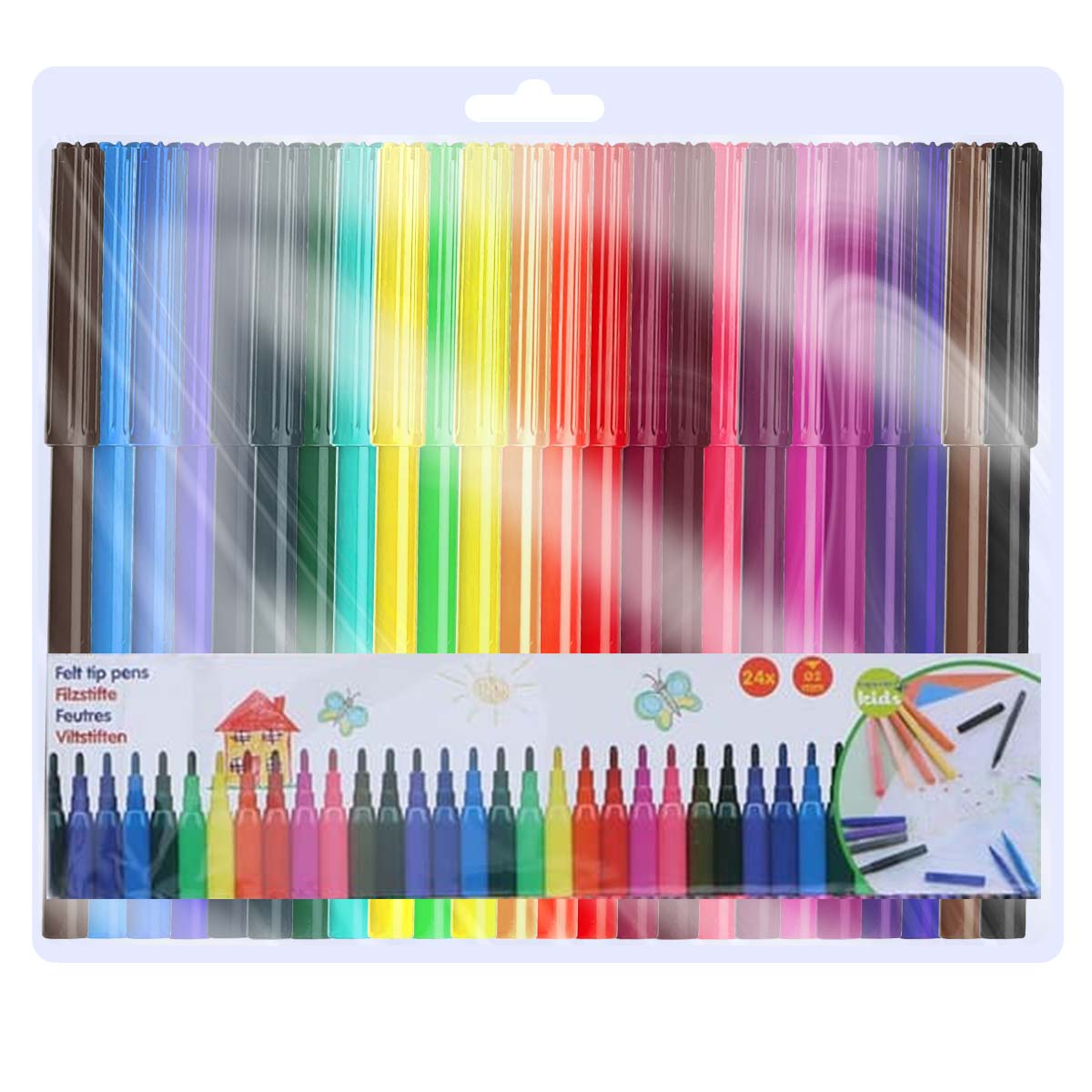 24 Lajitellun Huopakynän Setti Hienolla 2mm Kärjellä Piirustukseen ja Väritykseen