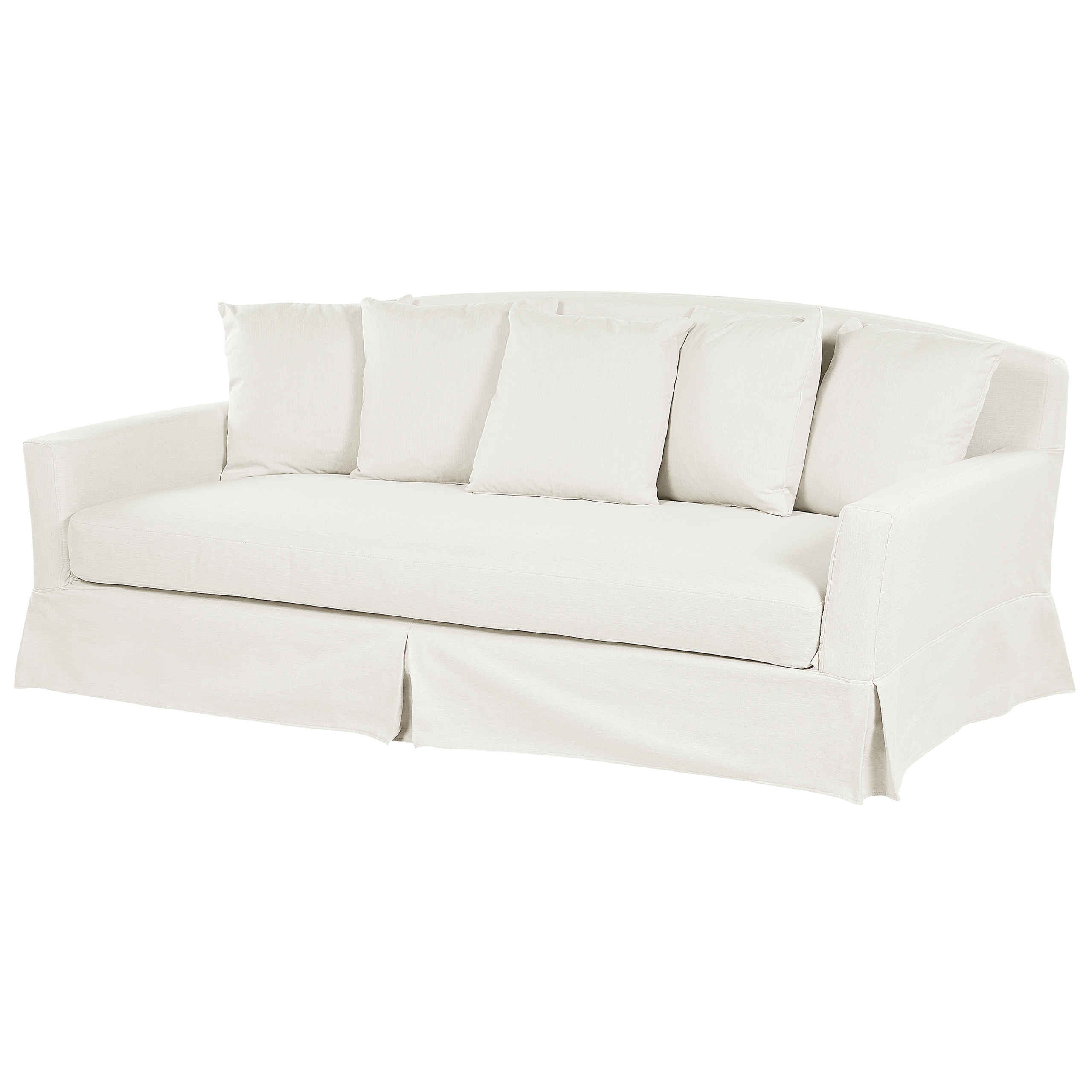 Irrotettava päällinen sohvalle. Suojaa sohva tällä tyylikkäällä sohvanpäällisellä ja anna sille ansaittu muodonmuutos. Kestävä, polyesterikankaasta valmistettu päällinen vaatii vain vähän ylläpitoa ja säilyy hyväkuntoisena vuosia. Upea luonnonvalkoinen väri sopii vaivattomasti monenlaisiin sisustuksiin ja korostaa minkä tahansa tyylistä sohvaa. Päällisen sivut ja alaosa on viimeistelty kauniilla helmalla, joka tuo esiin sohvan ainutlaatuisen muotoilun.