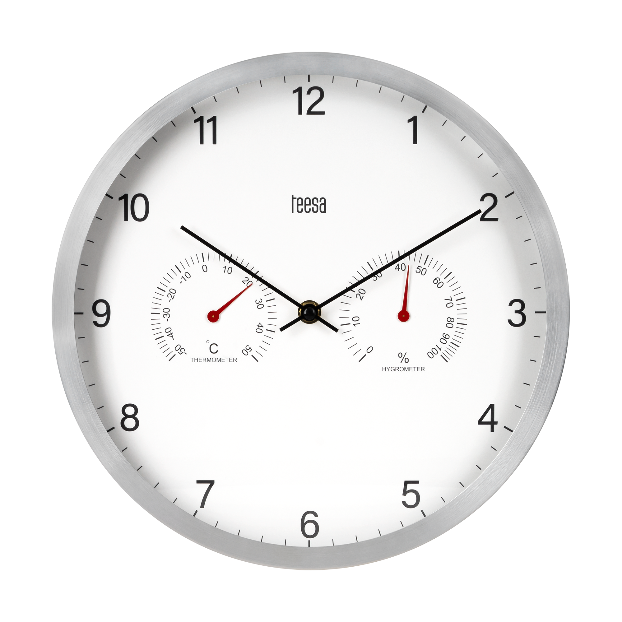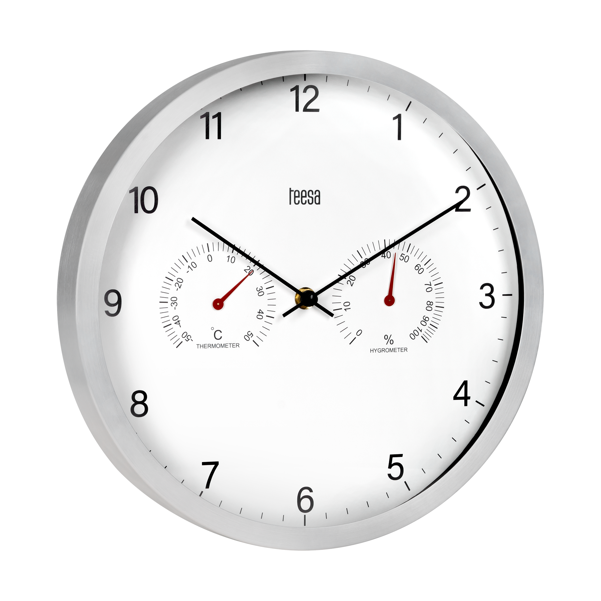 Tarkan ajanoton lisäksi Teesa-kello on varustettu käytännöllisellä lämpömittarilla ja hydrometrillä. Näiden avulla voit tarkistaa lämpötilan ja kosteuden milloin tahansa, mikä on erityisen hyödyllistä kodeissa, toimistoissa tai työpajoissa. Se on erinomainen työkalu optimaalisten ympäristöolosuhteiden ylläpitämiseen ja käyttäjien terveyden ja mukavuuden edistämiseen.