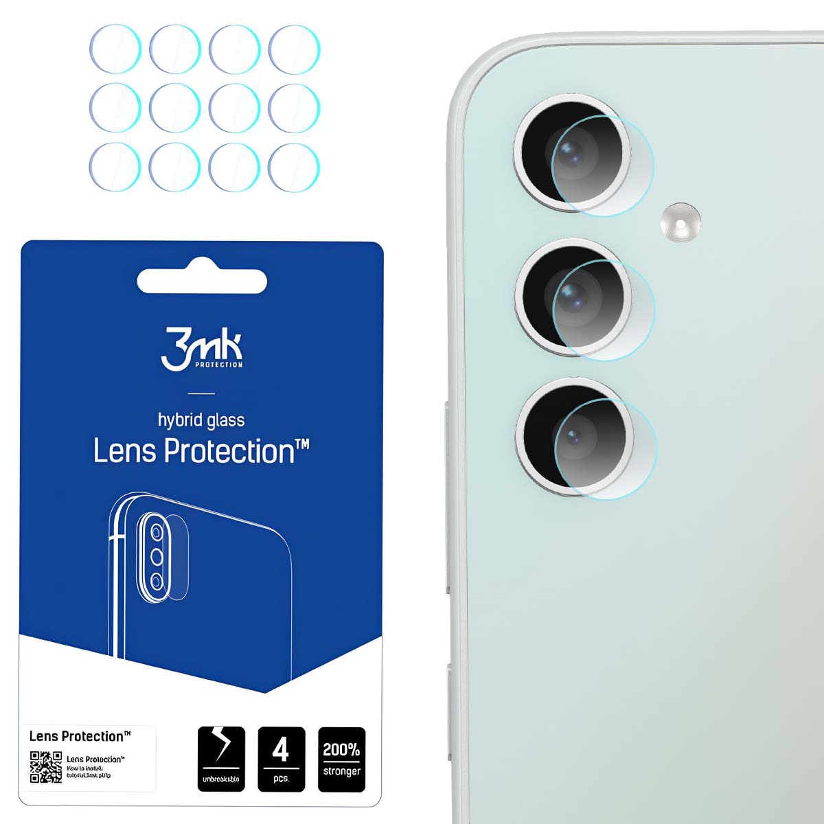Tämä pakkaus sisältää 4 sarjaa 3MK-linssisuojia Galaxy A34 5G -puhelimelle, 3 kappaletta per sarja. Jokainen suoja peittää linssit tarkasti häiritsemättä salamaa tai muuttamatta kuvanlaatua. Keraamisella pinnoitteella vahvistettu hybridilasi on luokiteltu 6H-luokkaan ja suojaa naarmuilta ja mikroiskuilta. Iskun sattuessa lasi jakaa rasitusta vähentäen halkeamisriskiä jopa 200 %.