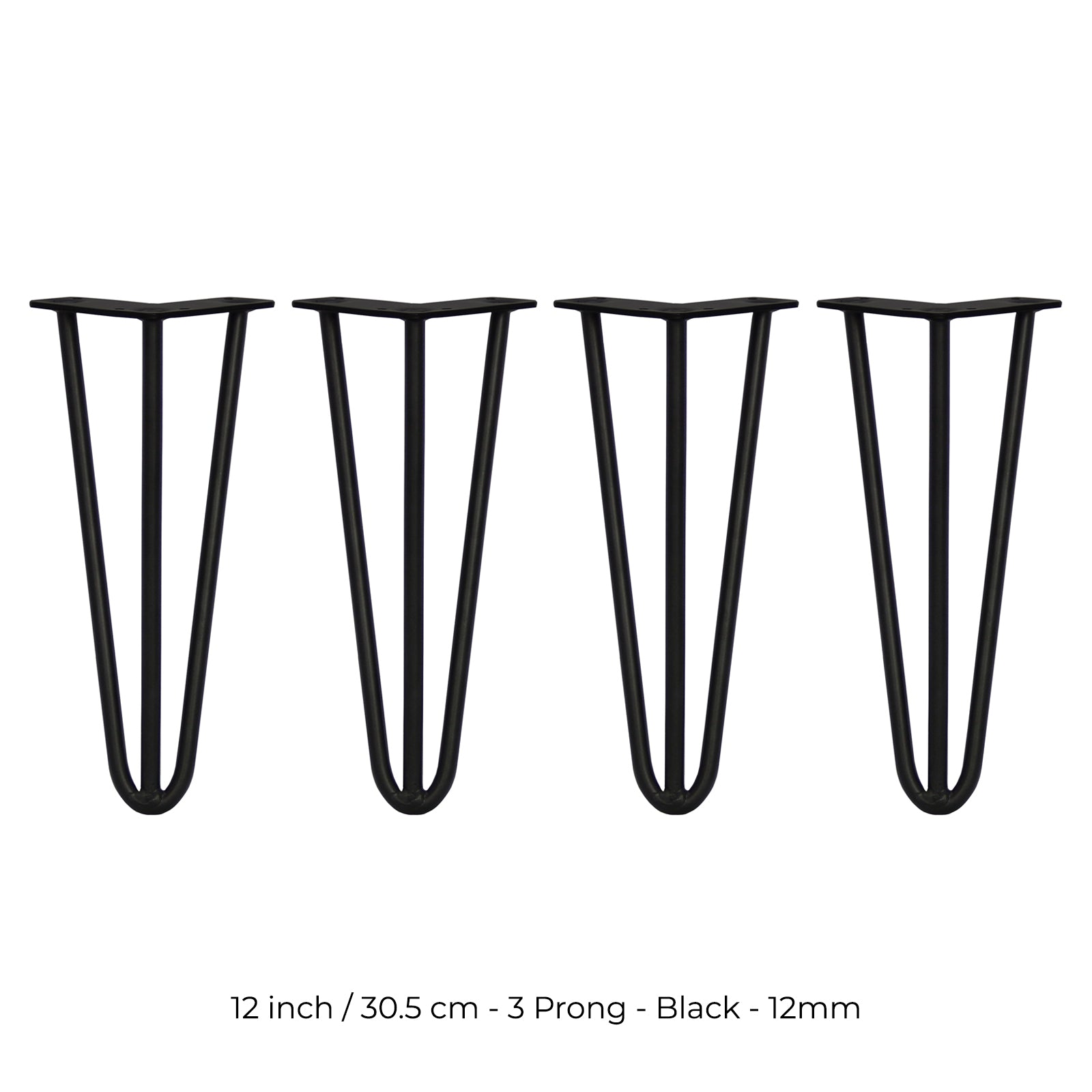 4 x 12" hiusneulanpäät - 3 piikkiä - 12 mm - musta