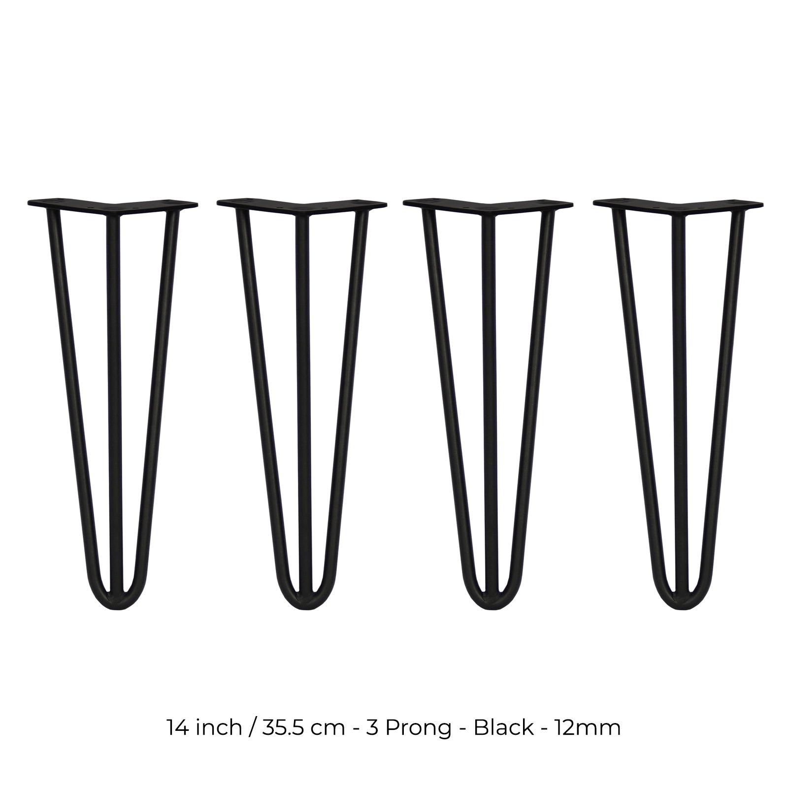 4 x 14" hiusneulan jalat - 3 piikkiä - 12 mm - musta
