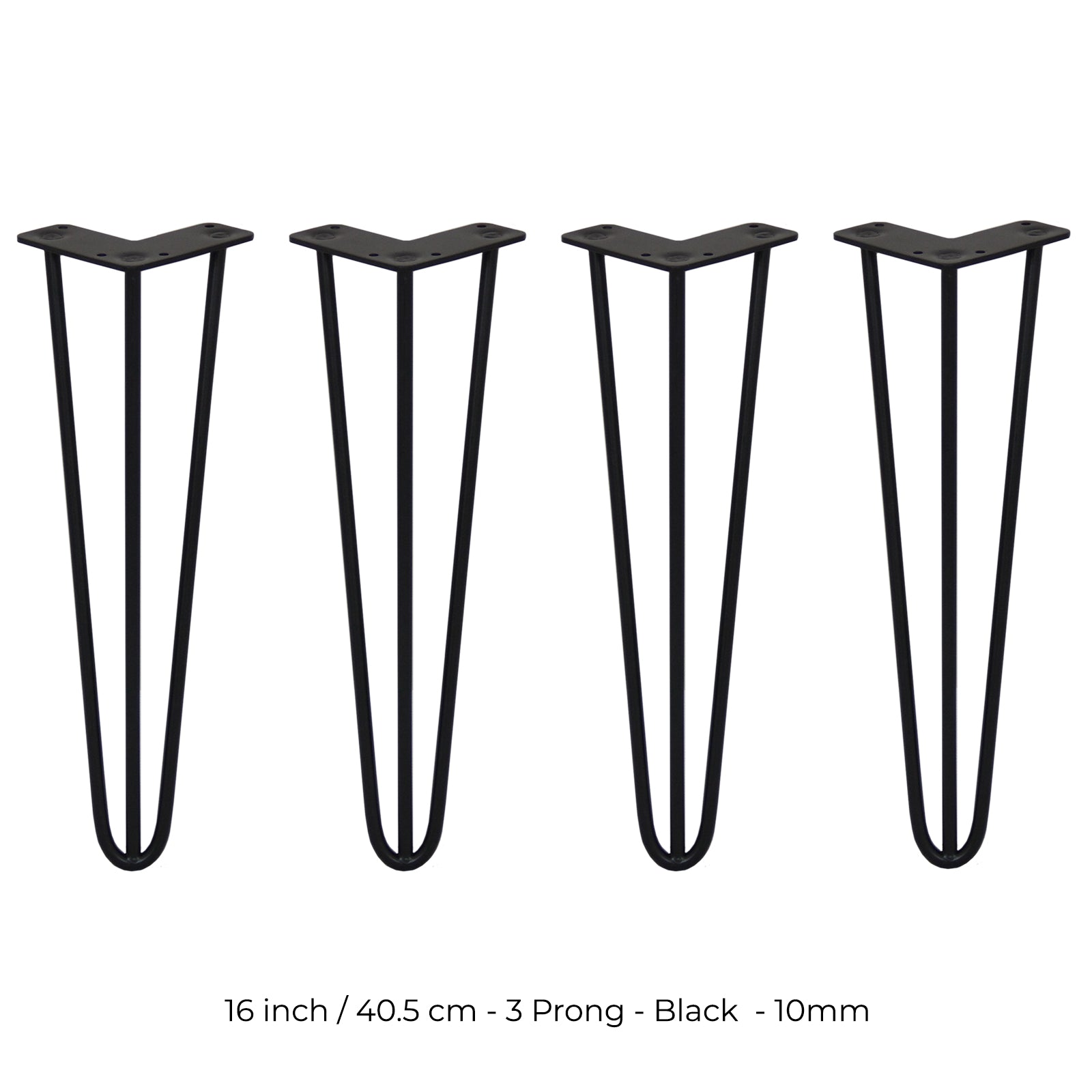 4 x 16" hiusneulan jalat - 3 piikkiä - 10 mm - musta