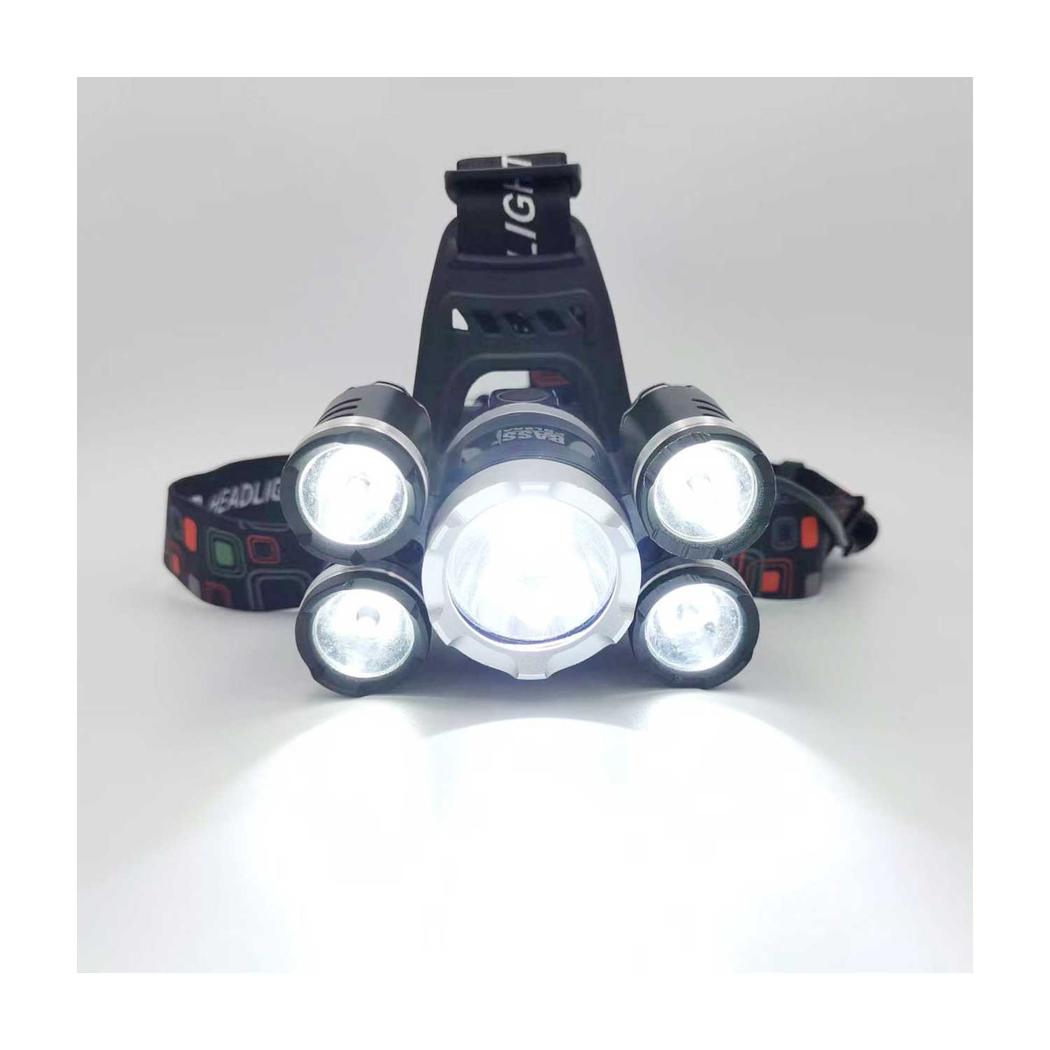 5× LED -otsalamppu, ladattava otsavalo