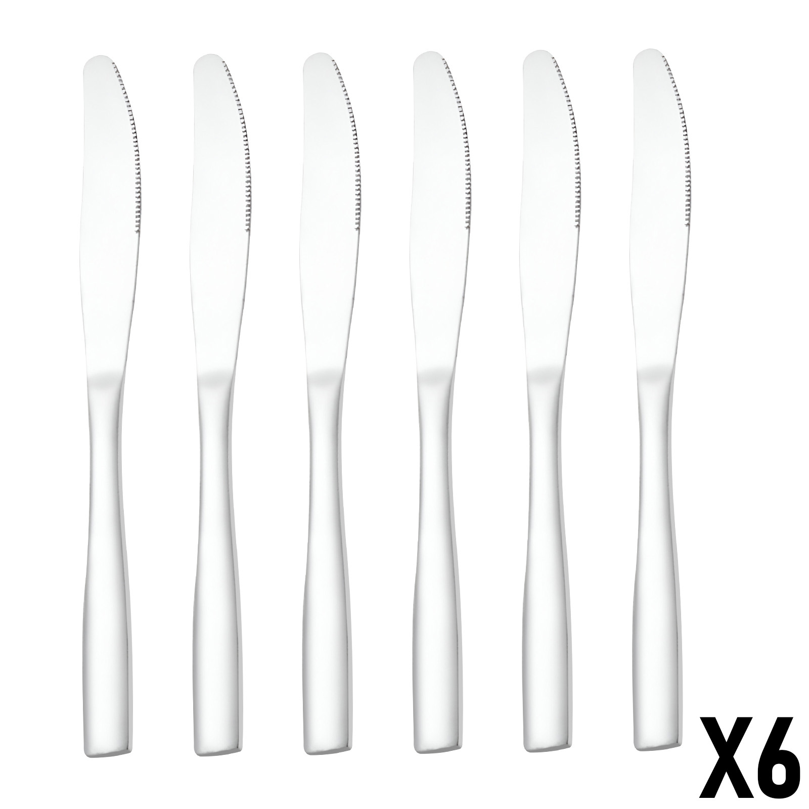 Tämä 6 hopeanvärisen ruostumattomasta teräksestä valmistetun pöytäveitsen sarja on suunniteltu pitkäikäiseen, tyylikkääseen jokapäiväiseen käyttöön. Täydellisen terävät terät, joiden pituus on 23 cm, takaavat hyvän otteen ja tarkan leikkauksen. Tukevat, korroosionkestävät ja helposti puhdistettavat veitset sopivat erinomaisesti kaikenlaisiin aterioihin. Niiden moderni muotoilu sopii harmonisesti mihin tahansa pöytäasetelmaan.