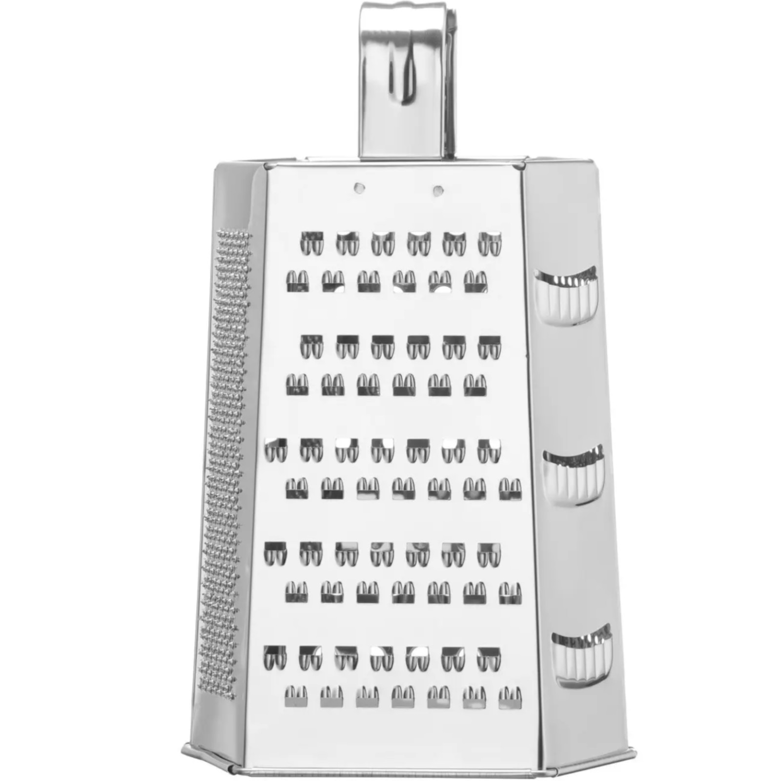 6-sivuinen keittiöraastin vihanneksille ja juustolle 135 x 113 x 215 mm
