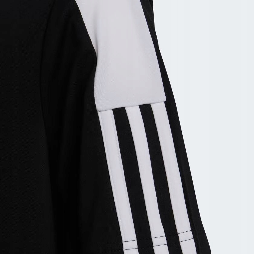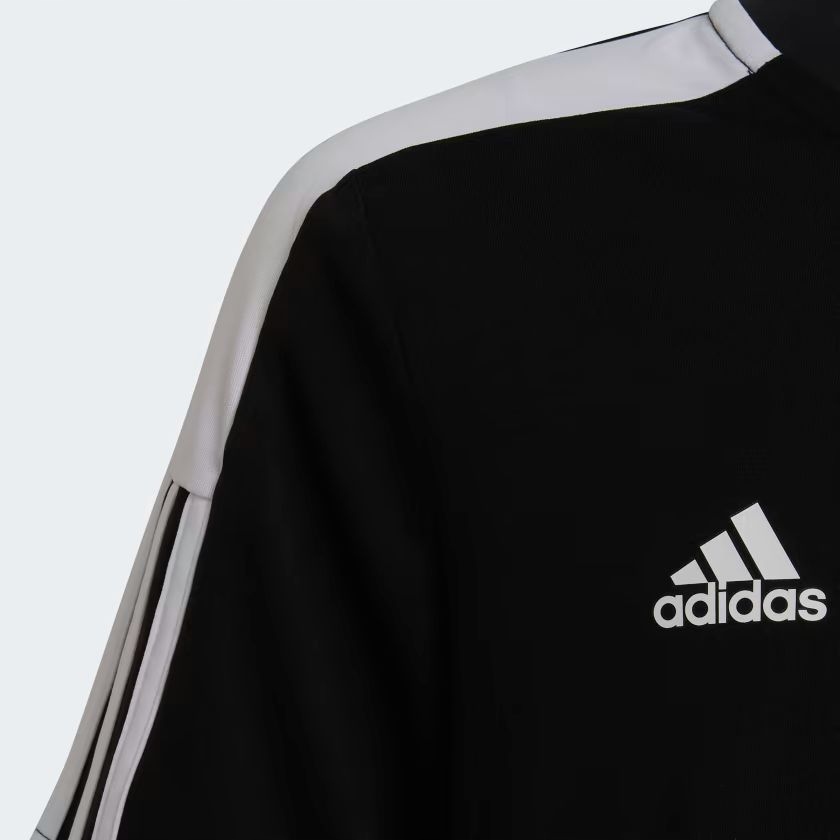 - Klassinen muotoilu, jossa merkkilogo rinnassa ja ikoniset Adidas-raidat hihoissa.