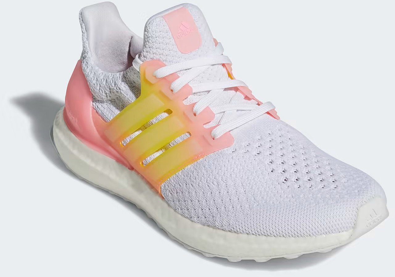 Adidas Ultraboost 5.0 DNA -kengät tulevat ainutlaatuisella värillä, jossa on kaltevia aksentteja, ja adidas-logo kengän sivulla lisää klassista tunnelmaa.