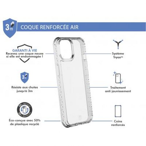Tämä AIR Reinforced iPhone 14 -kotelo on erittäin kestävä suojaava lisävaruste älypuhelimellesi. Siinä on tyylikäs läpinäkyvä viimeistely ja mukautettu vahvistettu muotoilu, joka kestää iskuja ja pudotuksia 3 metristä. Kuori on valmistettu kierrätysmateriaaleista, mikä lisää kestävyyttä.
