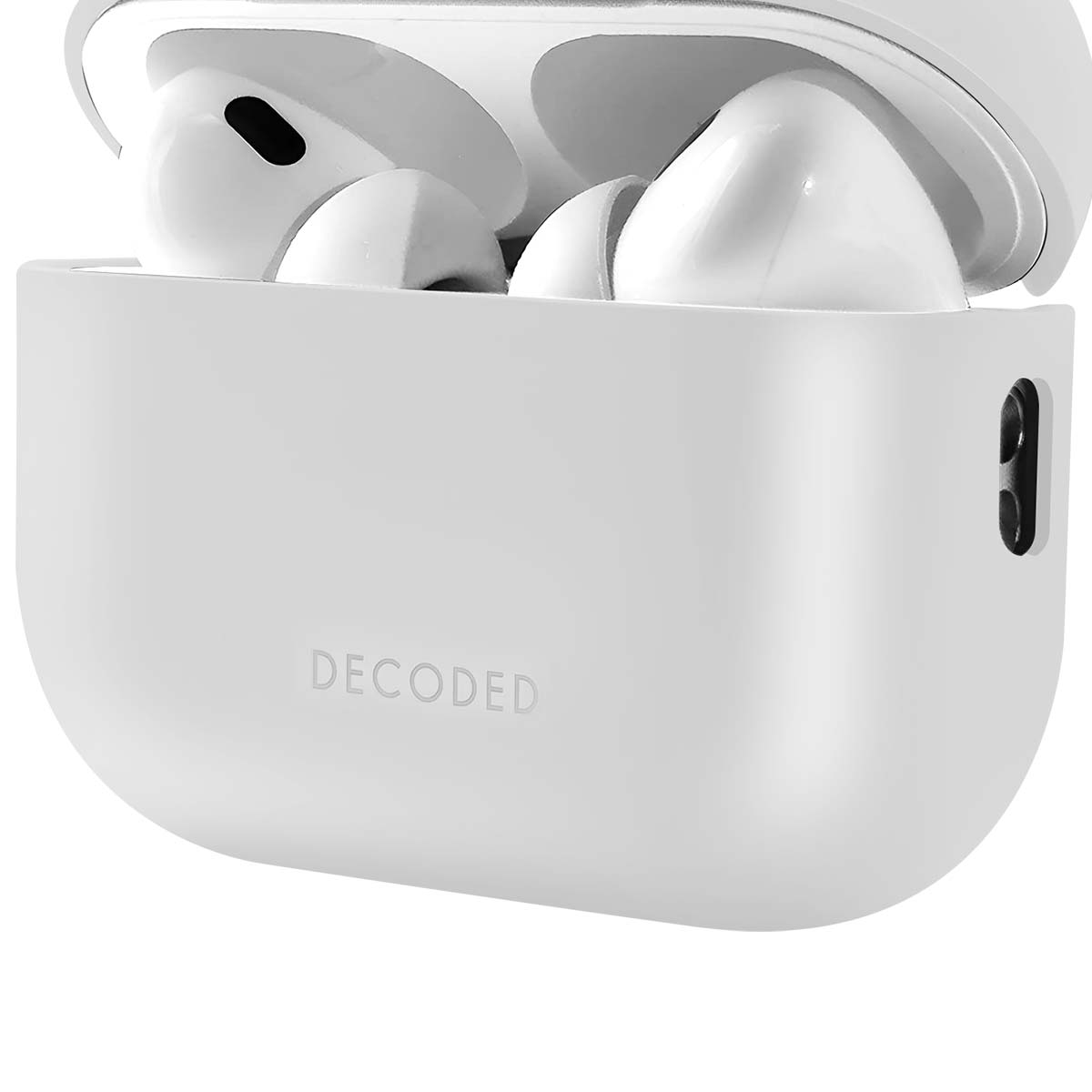 Pehmeästä silikonista valmistetun Decoded-kotelon ansiosta voit ottaa AirPods Pro 3 -laitteesi täysin turvallisesti mukaasi. Iskuja ja naarmuja kestävä kotelo suojaa koteloasi painamatta sitä. Sen pehmeä pinta takaa hyvän otteen ja on yhteensopiva langattoman latauksen kanssa. Ihanteellinen, kun olet liikkeellä. Pehmeän tuntuinen rakenne takaa miellyttävän tuntuman ja huolitellun ulkonäön. Kestää pölyä ja sormenjälkiä, jotta kotelo pysyy puhtaana. Suojaa tehokkaasti alkuperäistä koteloa häiritsemättä avaamista tai sulkemista. Yhteensopiva kaikkien MagSafe-tarvikkeiden ja langattomien latausasemien kanssa. Minimalistinen, huomaamaton muotoilu sopii kaikkiin tyyleihin ja ympäristöihin.