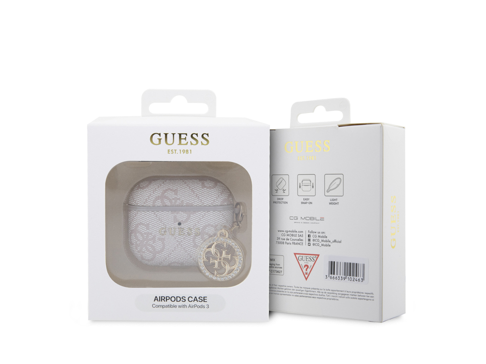 Koristele ja suojaa AirPods 3 -laitteesi tällä Guessin 4G Script -suojuksella. Se tarjoaa optimaalisen suojan jokapäiväisiä kolhuja ja putoamisia vastaan. Valmistettu polykarbonaatista yhdistettynä synteettiseen nahkaan ainutlaatuisen, ajattoman kuvion luomiseksi. Tämä kotelo on helppo asentaa ja pitää kuulokkeet tukevasti paikallaan. Se on suunniteltu niin, että latausporttiin pääsee helposti käsiksi.