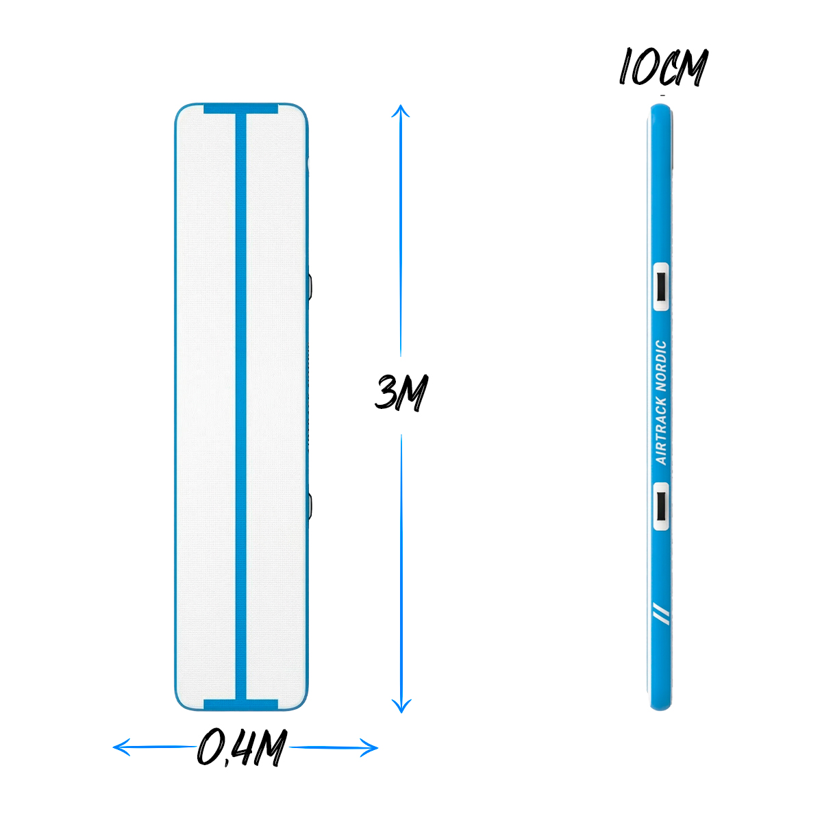 AirTrack Nordic AirBeam on turvallinen apuväline puomiharjoituksiin kotona sisällä, ulkona tai voimistelusalilla! Sen 10 senttimetriä leveä keskiviiva auttaa voimistelijoita hahmottamaan puomin mitat alastulossa ja kasvattamaan itseluottamusta puomin kanssa. AirBeam on 40 senttimetriä leveä ja 3 metriä pitkä, joten se suojaa loukkaantumisilta myös jos epäonnistut alastuloissa.