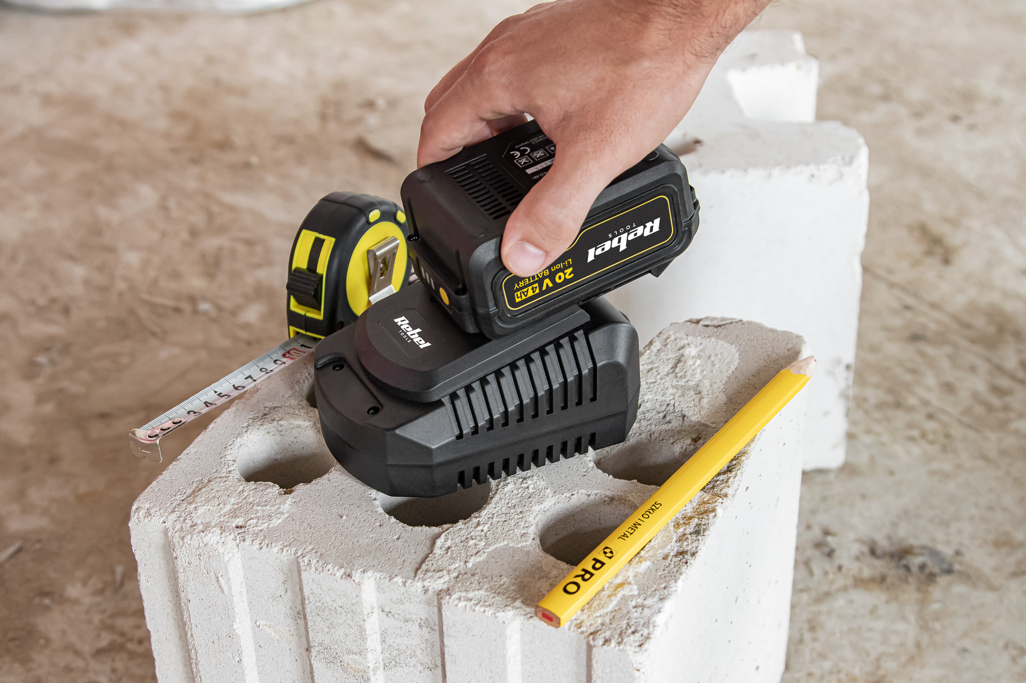 Jotta työsi jatkuisi pidempään ilman, että sinun tarvitsee pysäyttää akkua latauksen vuoksi, Rebel Tools tarjoaa myös erillisen 20 V, 4 Ah akun, joka pidentää tehokkaasti monien laitteiden, kuten porakoneiden/ruuvinvääntimien, puhaltimien, saksien ja trimmereiden sekä pistosahojen ja kompressorien, käyttöaikaa. Tämä lisäakku on täydellinen korvaaja nykyisen akun latautuessa. Sen avulla voit osallistua entistä enemmän kotitöihin.