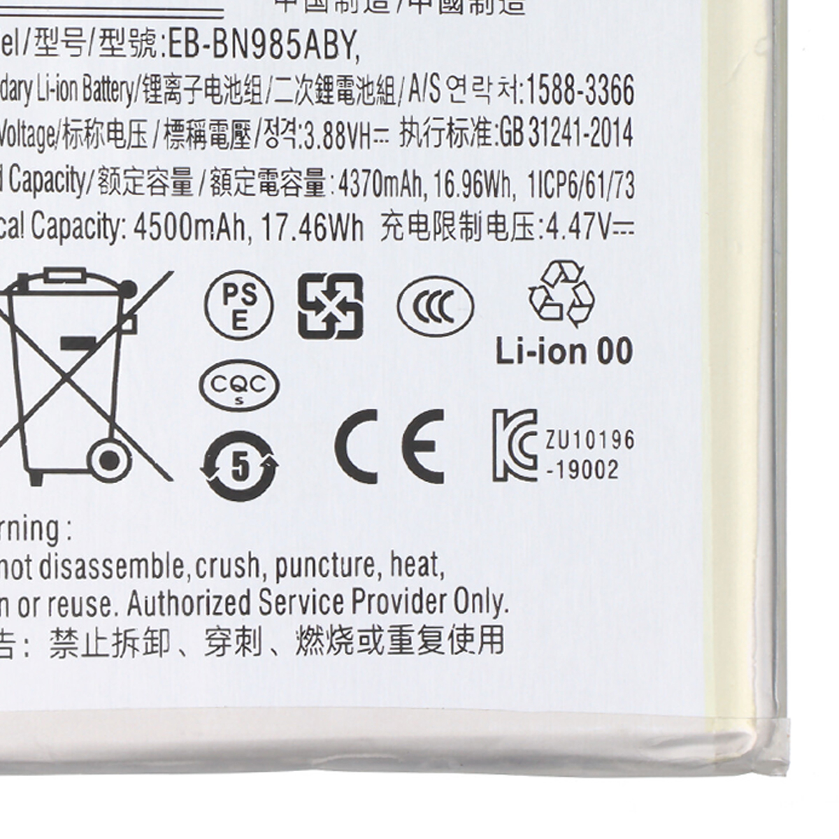 Vaihtoakku 4.47V 4500mAh 17.5Wh Galaxy Note 20 Ultra -puhelimeen. Li-Ion teknologia. Työkaluton sisäinen vaihto. Yhteensopiva seuraavien referenssien kanssa : EB-BN985ABY / GH82-23333A. Yhteensopivuusmallit : Galaxy Note 20 Ultra / Galaxy Note 20 Ultra 5G / SM-N985 / SM-N986B/DS.