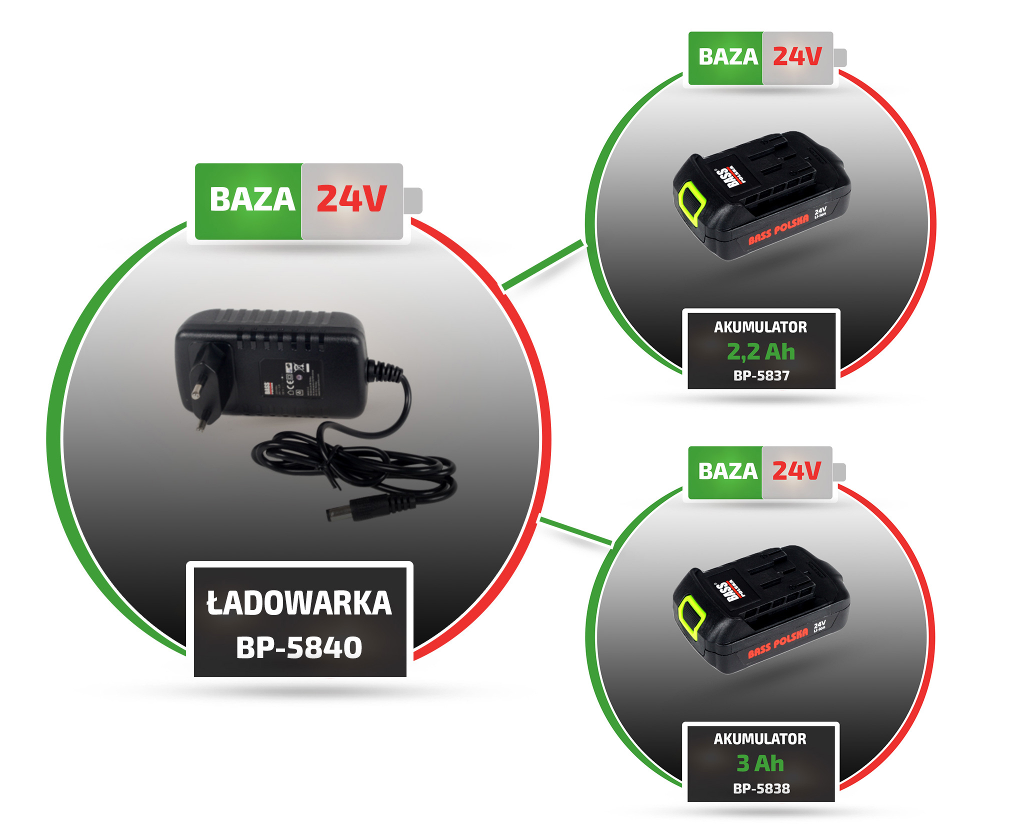 Akkulaturi 24 V Li-ion -akuille (Bass Polska)