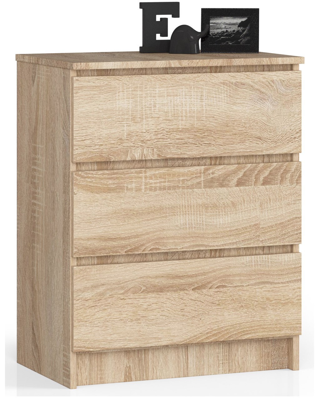 Akord Senkkiti 3 laatikkoa Sonoma-tammi on ihanteellinen valinta sinulle, joka etsit tyylikästä ja käytännöllistä lipastoa. Kompakti mutta tilava lipasto (60 x 40 x 77 cm) sopii täydellisesti moderniin sisustukseen, ja sen Sonoma-tammi-sävy tuo eleganttia ilmettä makuuhuoneeseen, olohuoneeseen tai eteiseen. Kestävä 16 mm laminoitu levy varmistaa lipaston pitkäikäisyyden ja helpon puhtaanapidon.