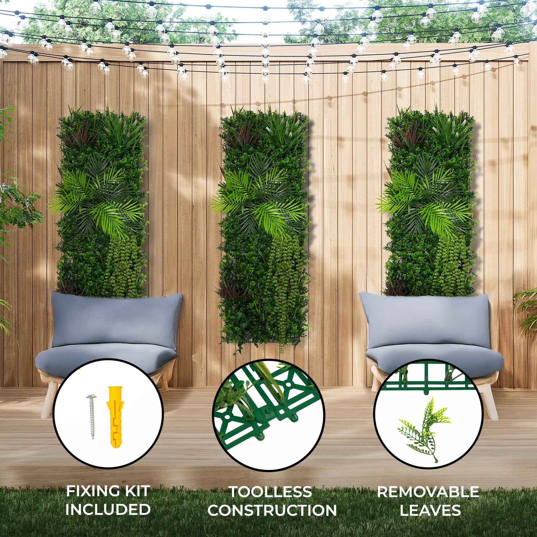 Nämä 50 cm x 150 cm:n kokoiset laatat tarjoavat laajan peittoalan, jonka avulla voit vaivattomasti luoda realistisen kasviseinän ilmeen. Vaikuttavaksi ja käytännölliseksi suunnitellut laatat takaavat saumattoman istuvuuden, olitpa sitten korostamassa pientä tehostealuetta tai peittämässä koko pinnan eloisalla vihreydellä.