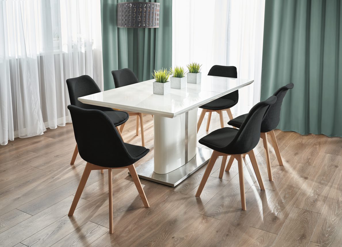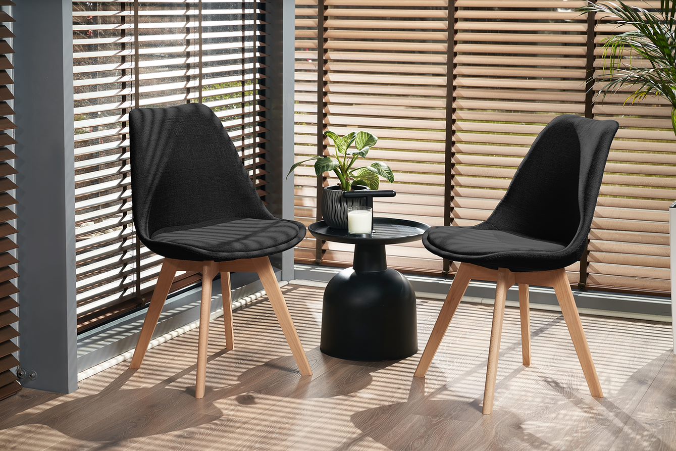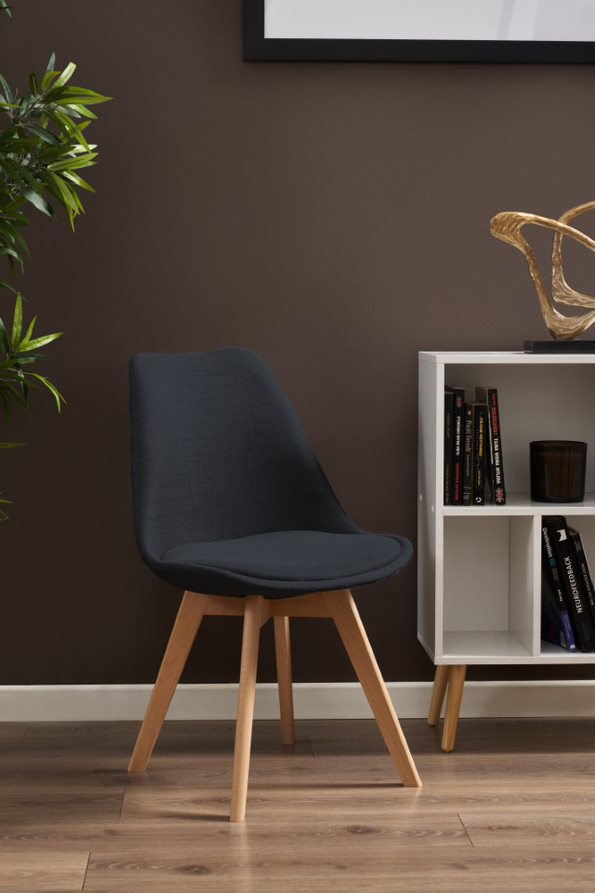 Siinä on täydellisesti muotoiltu selkänoja, joka on verhoiltu kankaalla, mikä yhdessä istuimeen asetetun pehmeän-tyynyn kanssa takaa erinomaisen mukavuuden. Puiset pyökistä valmistetut ja vaaleasta varjostimesta valmistetut jalat takaavat vakauden ja kestävyyden. Tuoli on erittäin käytännöllinen ja toimiva.