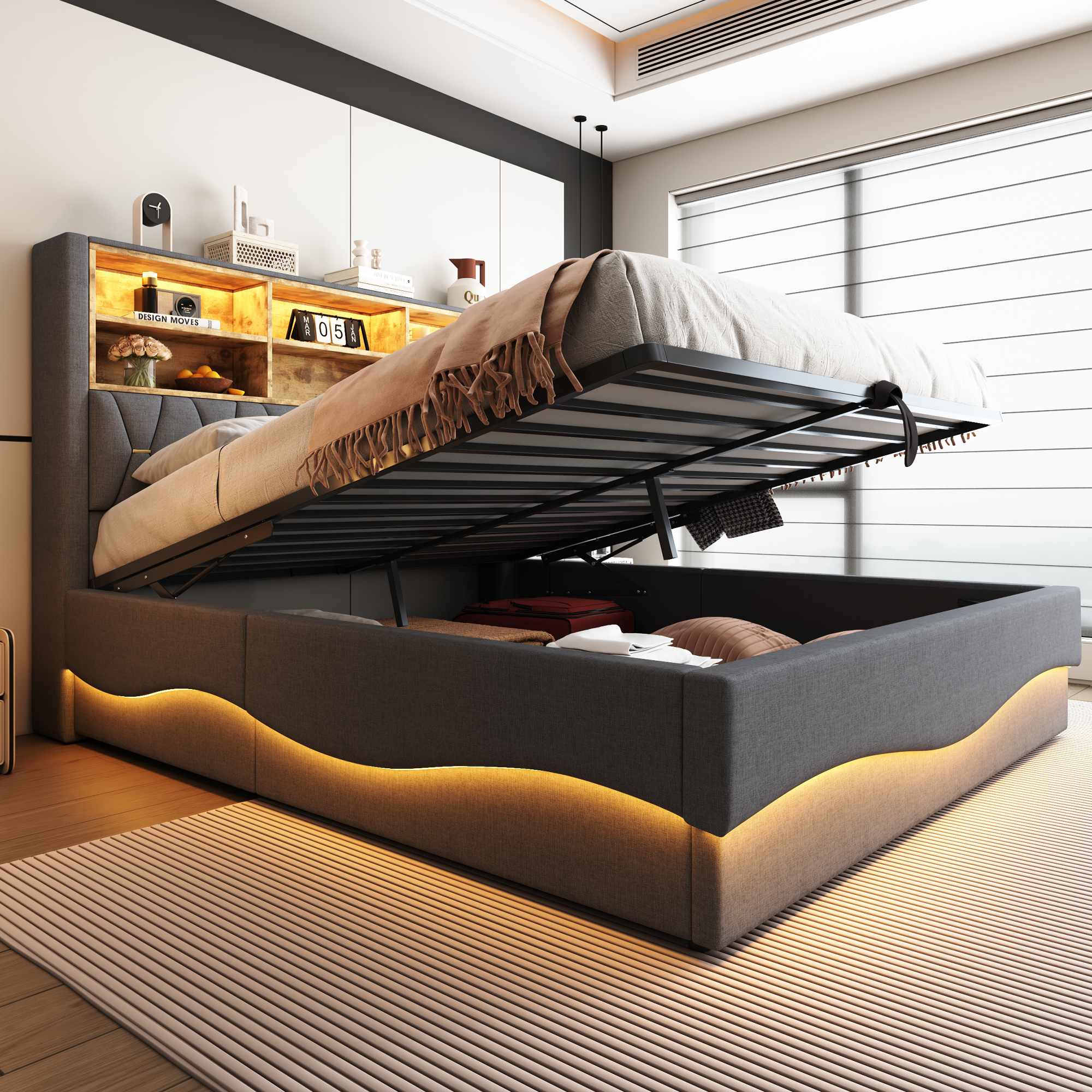 TIETEELLINEN SÄILYTYSIDEA: Sänky on varustettu avoimella säilytystilalla kirjoille, leluille tai vuodevaatteille tilankäytön parantamiseksi. Sänky on varustettu hydraulisella nostolaitteella, joka voi helposti avata tilavan säilytystilan sängyn alla, mikä soveltuu tilaa säästävään vuodevaatteiden, lelujen tai kausivaatteiden säilytykseen.