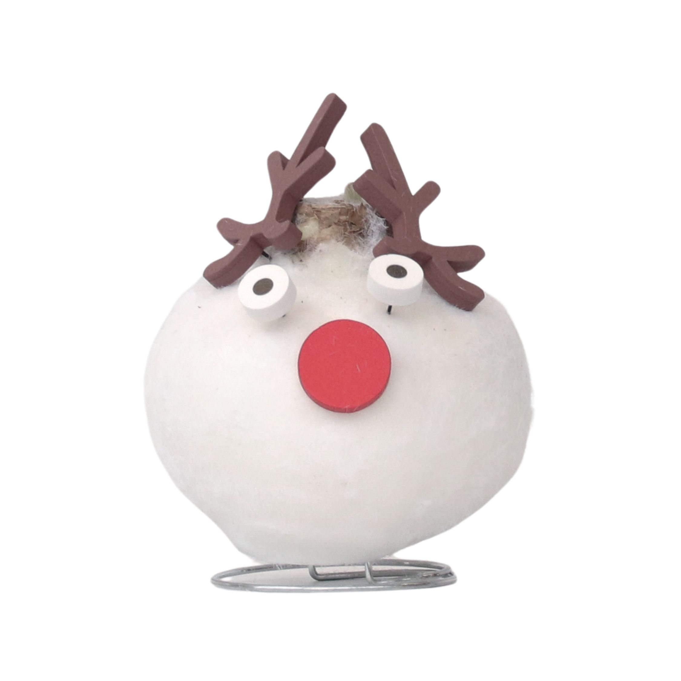 Tuo talven tunnelma kotiin amarylliksella! Upeat, tyylikkäät punaiset kukat tuovat lämpöä ja väriä talviseen sisustukseen. Kukinta kestää 3–6 viikkoa. Sipulilla on leikkisä poron ilme punaisella nenällä ja sarvilla, mikä luo iloisen ja juhlavan vaikutelman. Ainutlaatuinen katseenvangitsija, joka sopii täydellisesti joulutunnelmaan!