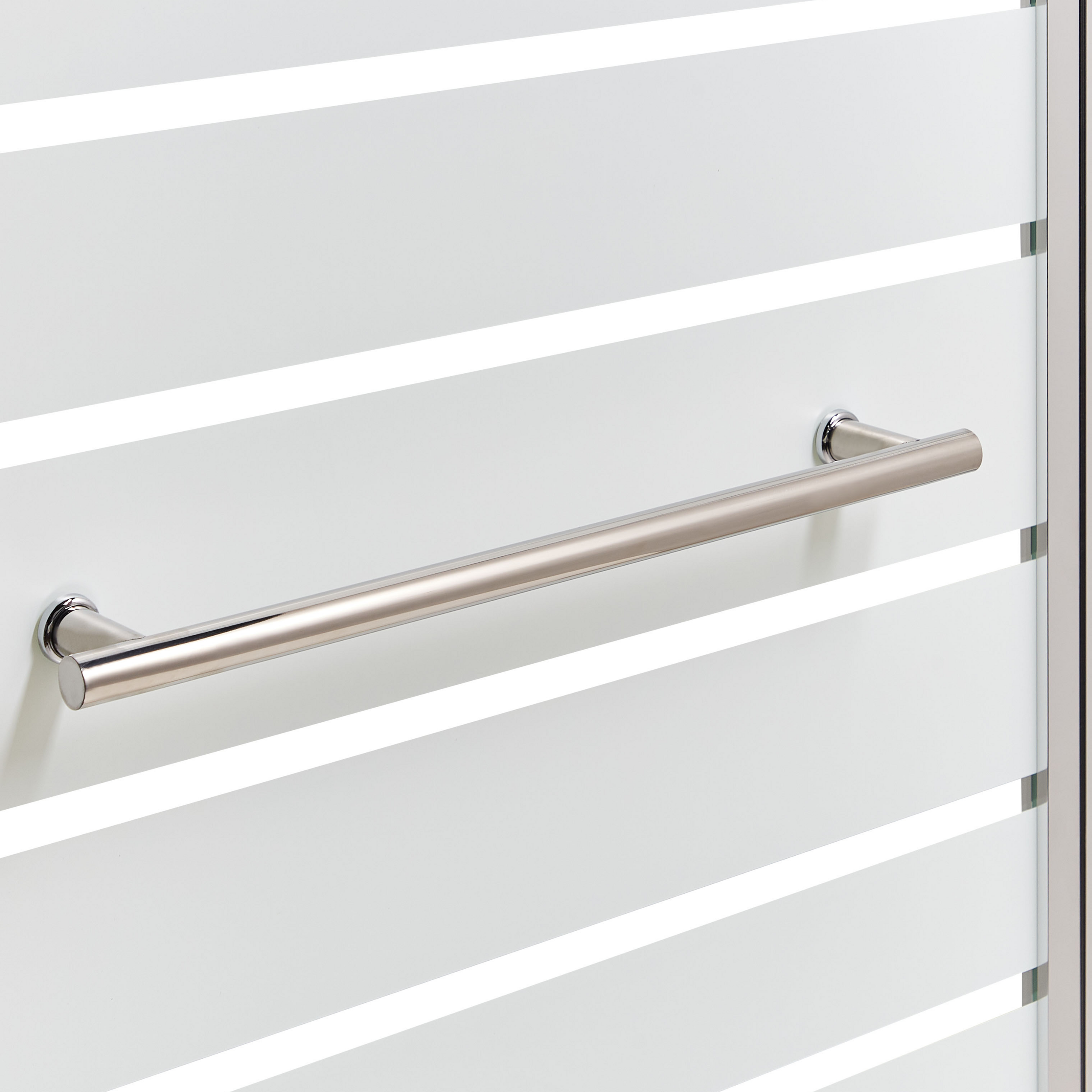 Minimalistinen ammeseinä ovella. Nauti rentouttavista kylvyistä ja virkistävistä suihkuista roiskeista huolehtimatta tällä tyylikkäällä ammeseinällä. Kestävästä karkaistusta lasista valmistetussa paneelissa on yksityisyyttä tarjoavat huurretut yksityiskohdat sekä tiiviste, joka estää paneelia vuotamasta. Alumiininen reunus mahdollistaa yksinkertaisen seinäasennuksen. Ammeseinä koostuu kahdesta osasta – toinen niistä on varustettu ruostumattomasta teräksestä valmistetulla kahvalla ja kääntyy 90 astetta, joten voit helposti säätää sen asentoa ammeesta noustessa.