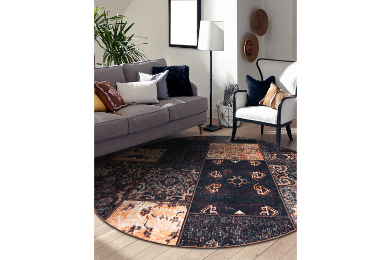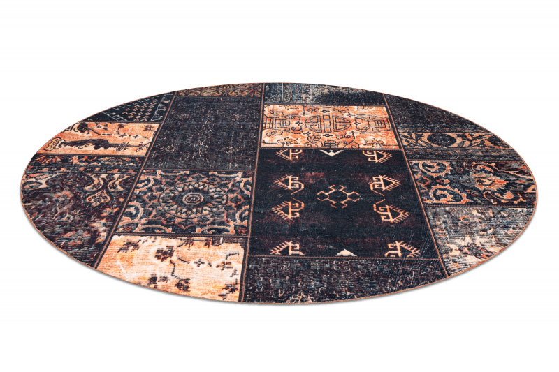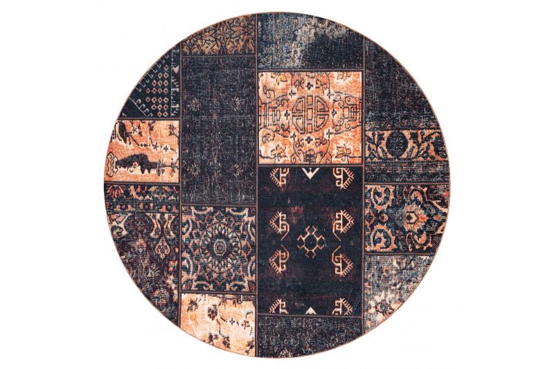 ANTIKA ancient chocolate matto pyöreä, moderni tilkkutyö pesu, kreikkalainen - musta / terrakotta pyöreä 160 cm