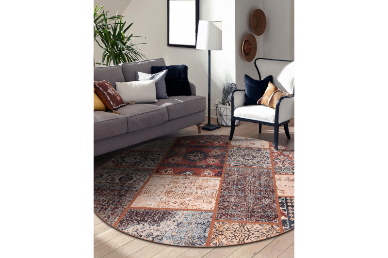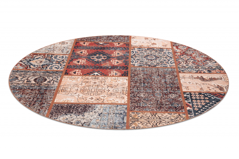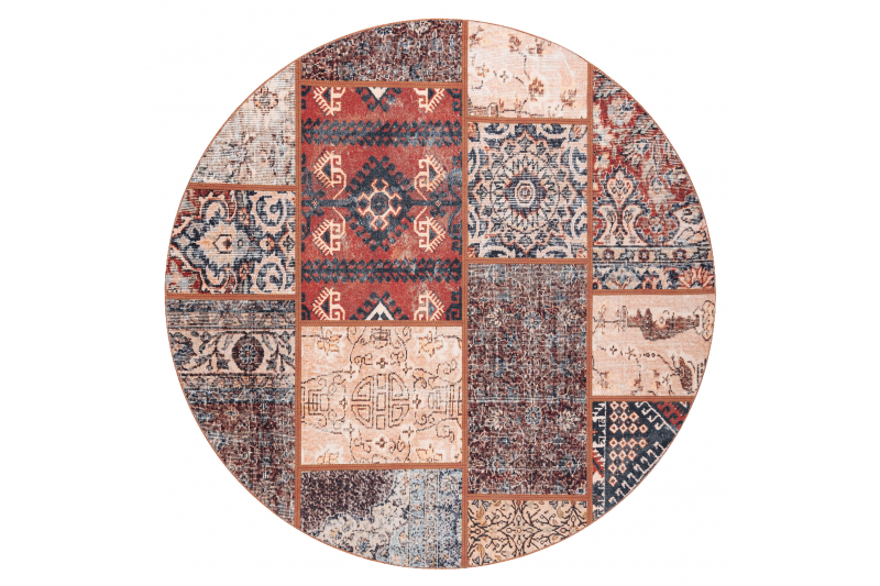 ANTIKA ancient rust matto pyöreä, moderni tilkkutyö pesu, kreikkalainen - terrakotta pyöreä 200 cm