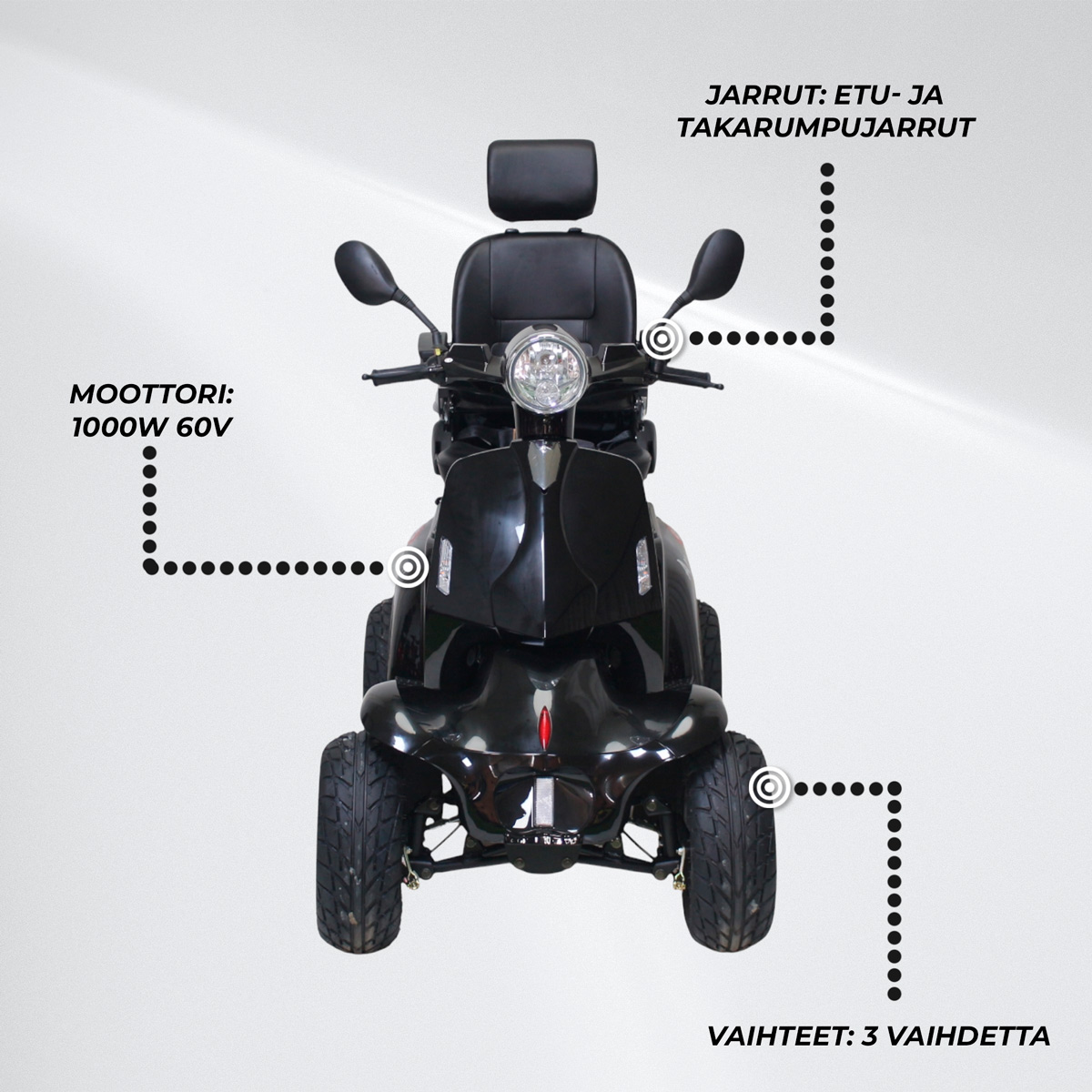 Koe vapaus ja itsenäisyys tyylikkäästi ja turvallisesti Arvo Senioriskootteri P900 Mustalla.