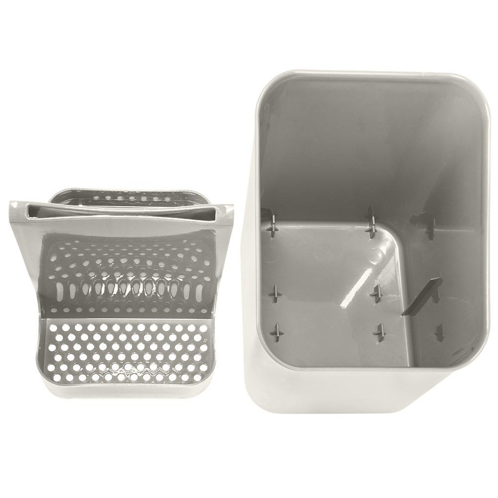 KESTÄVÄ - Ruokailuväline- ja keittiövälinelaatikko. Valmistettu korkealaatuisesta tuhkanharmaasta muovista. Erittäin kevyt. Säiliön mitat ovat 14 x 11,5 x 16 cm.