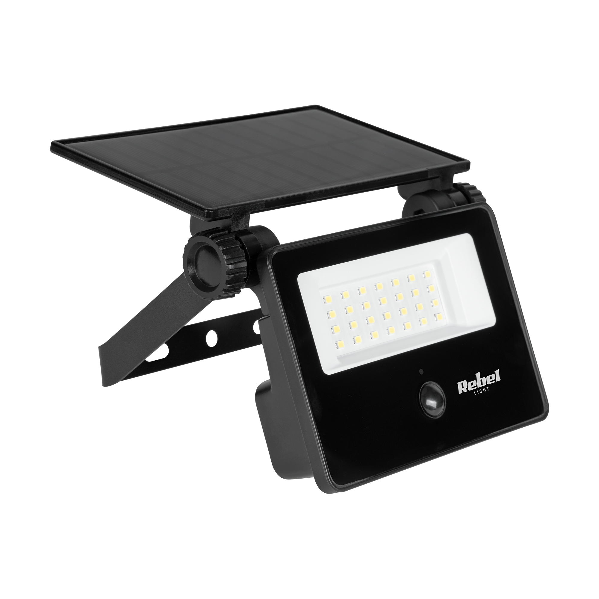 Aurinkoenergialla toimiva puutarhavalaisin hämärä- ja liiketunnistimella Rebel 6W