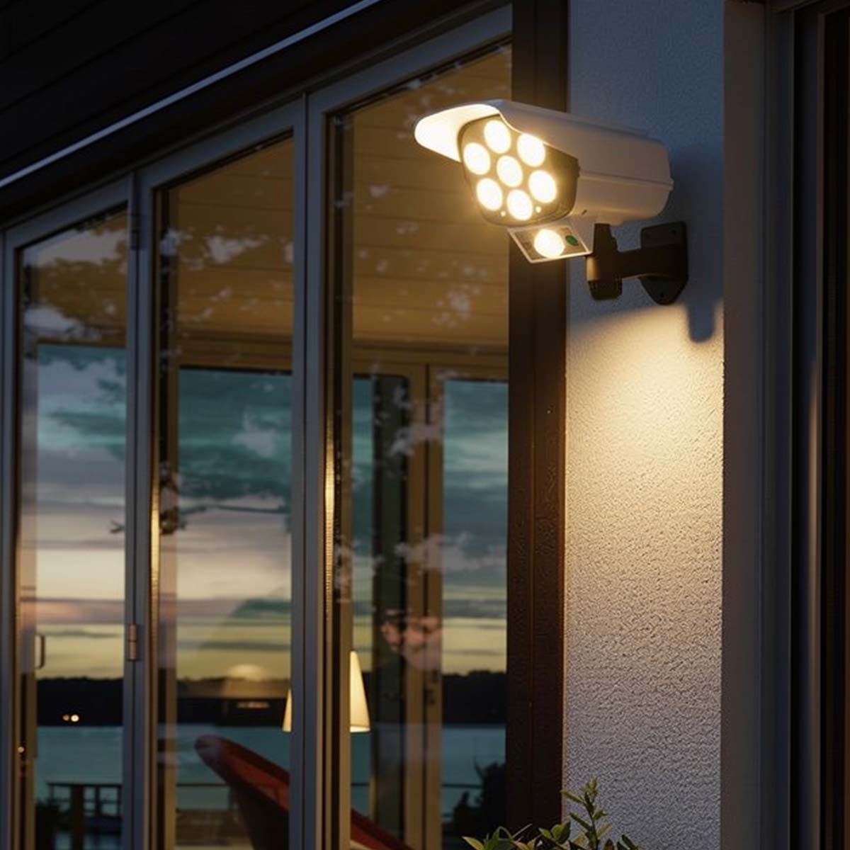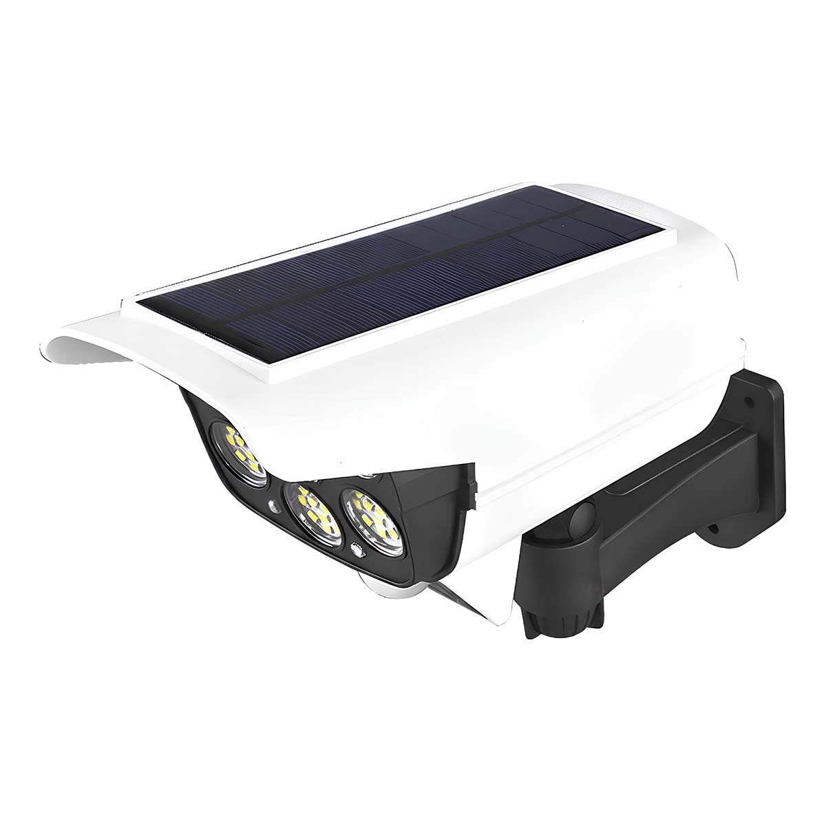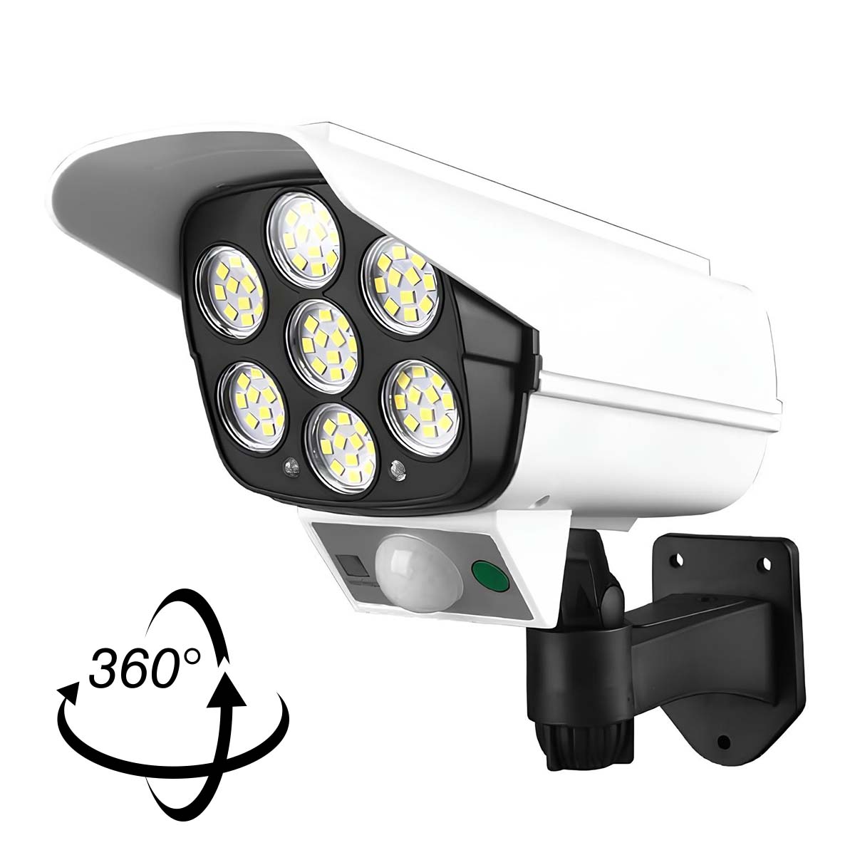 Kameratyyppinen ulkoaurinkovalaisin puutarhojen, terassien, autotallien ja ajoteiden valaisemiseen ilman johdotusta. 77 6500K LEDiä kirkkaaseen valoon, 120° PIR-anturi, jonka kantama on jopa 7,9 m ja 15-20 sekunnin viive virrankulutuksen rajoittamiseksi. 360° kääntyvä pää valon tarkkaan suuntaamiseen. 3 säädettävää tilaa kaukosäätimellä. IP65-vedenpitävyys, suunniteltu toimimaan luotettavasti ympäri vuoden.