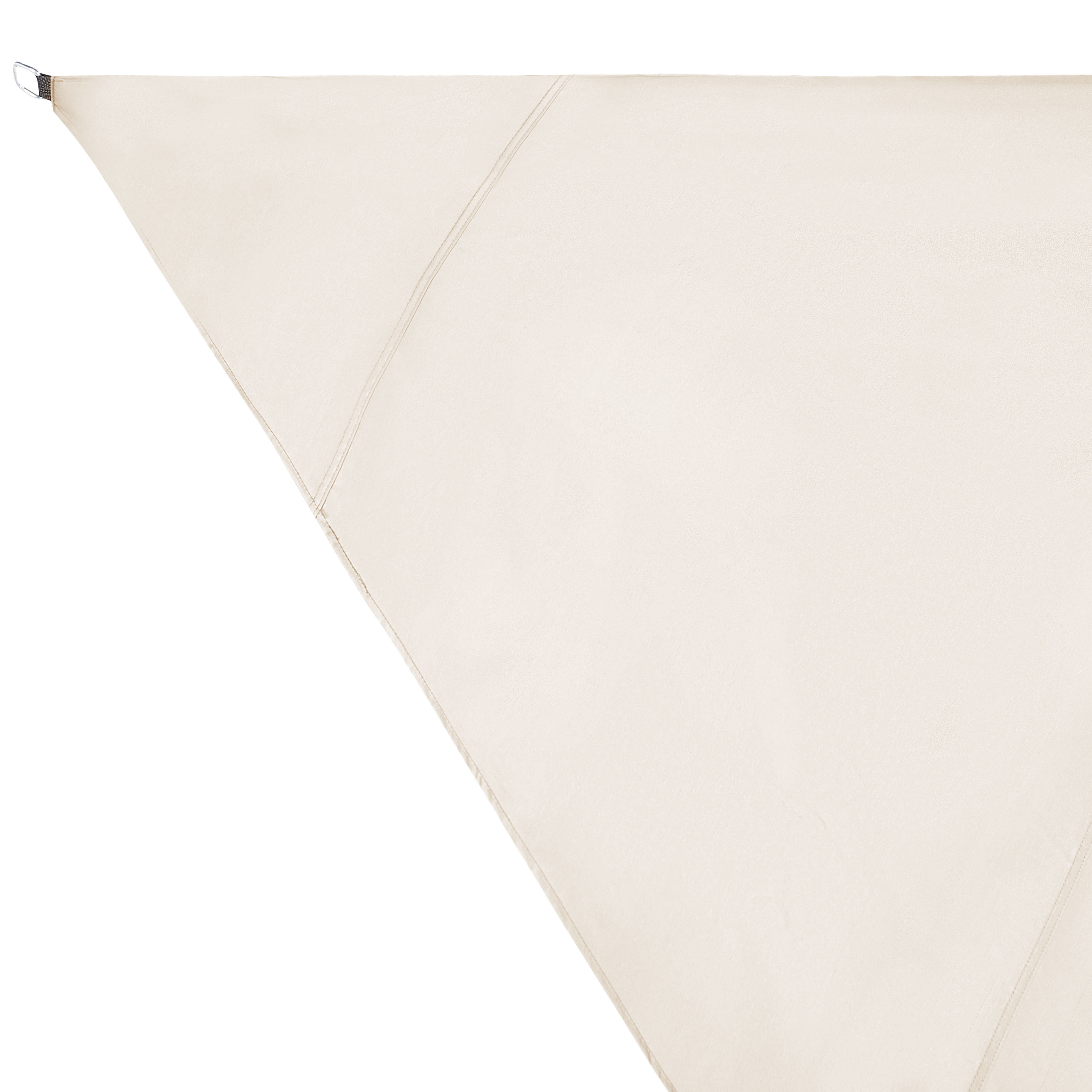 Suuri luonnonvalkoinen aurinkopurje puutarhaan. Luo parvekkeelle tai terassille varjoisa paikka, jossa viihtyä aurinkoisina päivinä huoletta tällä käytännöllisellä aurinkopurjeella. Neutraalin sävynsä ansiosta se sulautuu vaivattomasti osaksi monenlaisia ympäristöjä. Purje on valmistettu kestävästä polyesterikankaasta, jossa on vahvistetut reunat. Lisäpinnoitteen ansiosta se tarjoaa optimaalisen suojan auringolta. Se on helppo kiinnittää seiniin tai tolppiin, ja kolme ylimääräistä köyttä pitävät kankaan kireänä, joten se kestää myös voimakkaampia tuulenpuuskia.