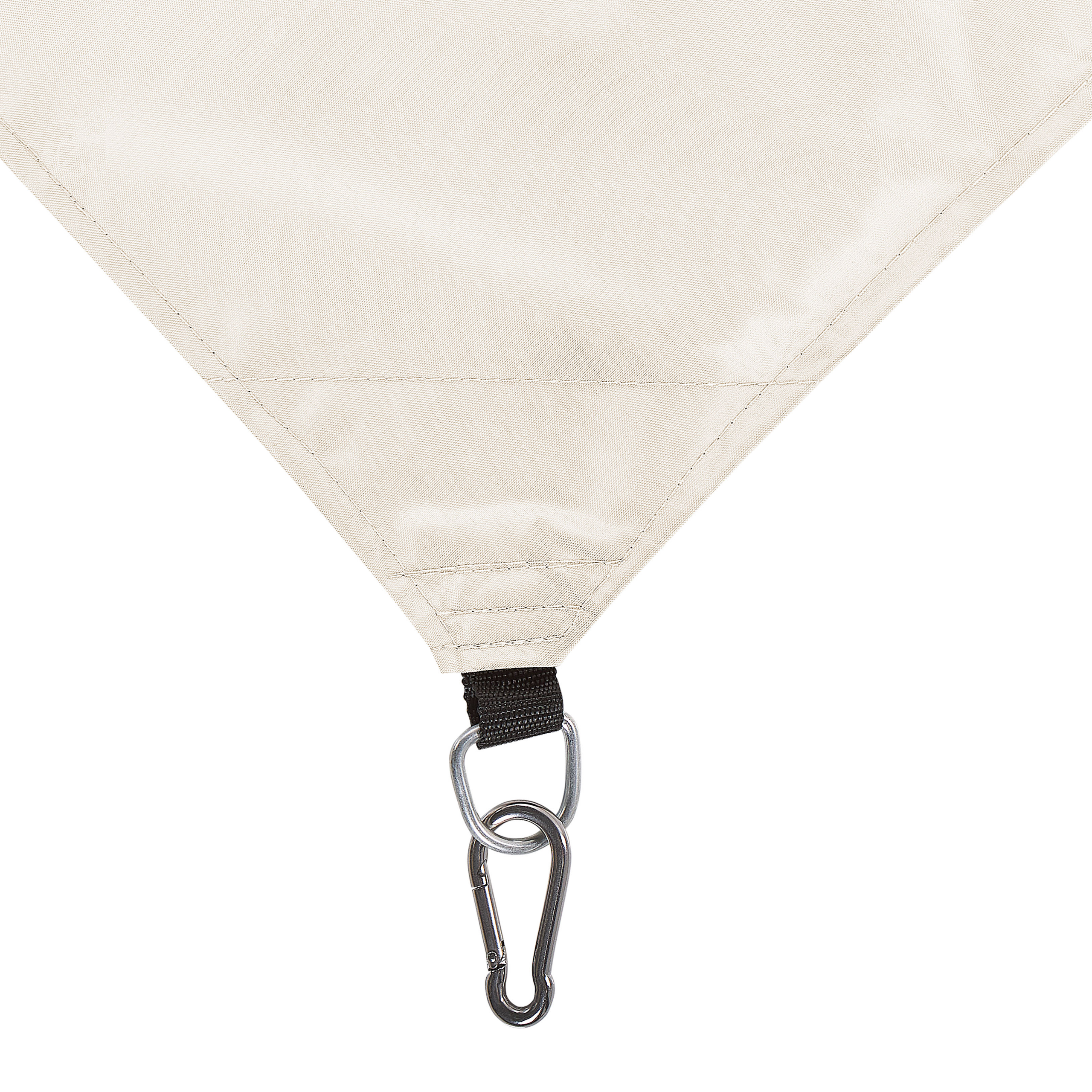 Suuri luonnonvalkoinen aurinkopurje puutarhaan. Luo parvekkeelle tai terassille varjoisa paikka, jossa viihtyä aurinkoisina päivinä huoletta tällä käytännöllisellä aurinkopurjeella. Neutraalin sävynsä ansiosta se sulautuu vaivattomasti osaksi monenlaisia ympäristöjä. Purje on valmistettu kestävästä polyesterikankaasta, jossa on vahvistetut reunat. Lisäpinnoitteen ansiosta se tarjoaa optimaalisen suojan auringolta. Se on helppo kiinnittää seiniin tai tolppiin, ja kolme ylimääräistä köyttä pitävät kankaan kireänä, joten se kestää myös voimakkaampia tuulenpuuskia.
