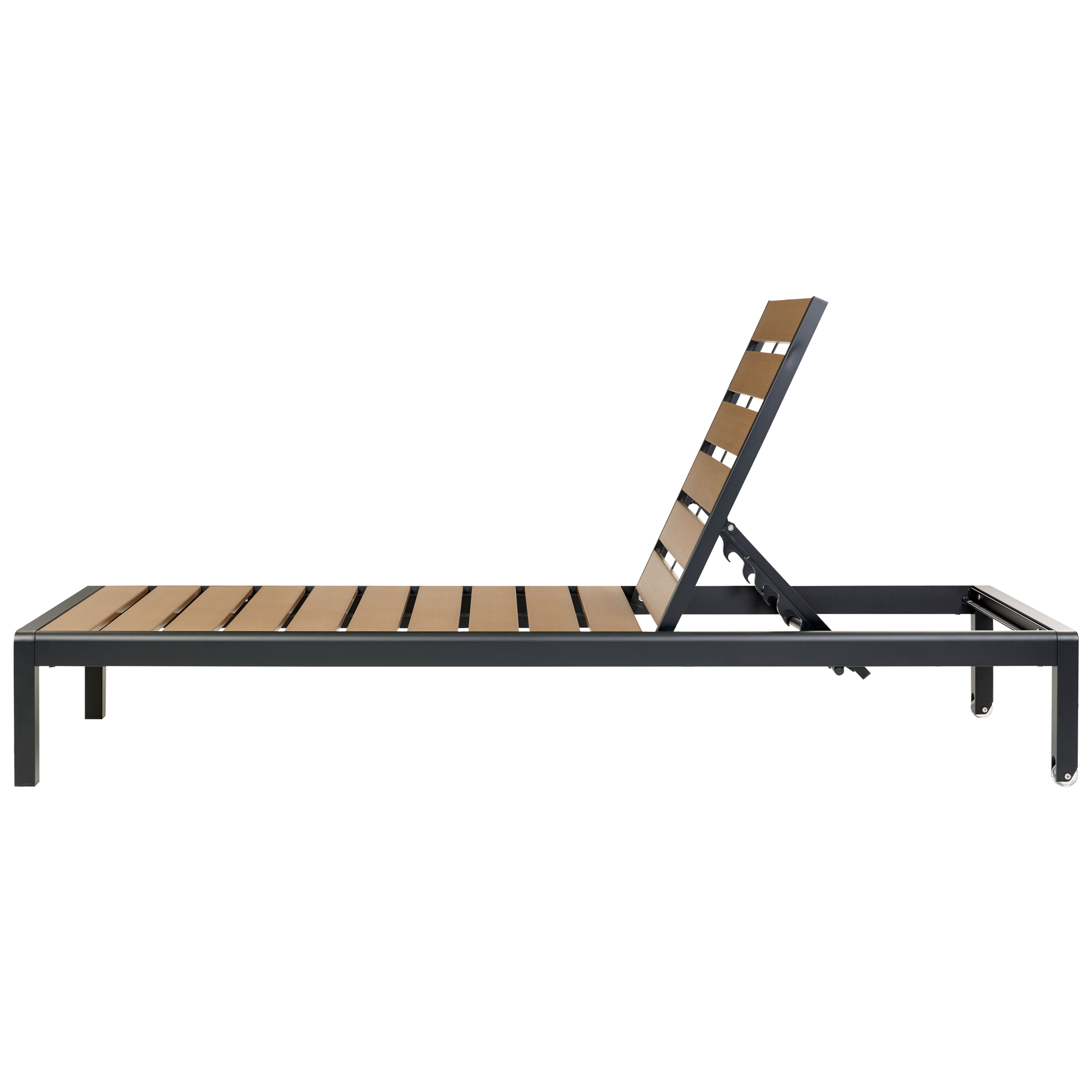 Industriaalinen säädettävä aurinkotuoli. Tämä industriaalinen aurinkotuoli luo tyylikkään ja ylellisen ilmeen jokaiseen puutarhaan tai terassille. Sen runko on valmistettu kestävästä alumiinista, kun taas istuinosa on helppohoitoista muovista puujäljitelmää. Materiaaliensa ansiosta aurinkotuoli kestää loistavasti erilaisia sääolosuhteita. Selkänojaa on mahdollista säätää jopa neljän asennon välillä, minkä ansiosta aurinkotuoli tarjoaa täydellistä mukavuutta. Minimalistinen muotoilu sulautuu erinomaisesti moderneihin ulkotiloihin.