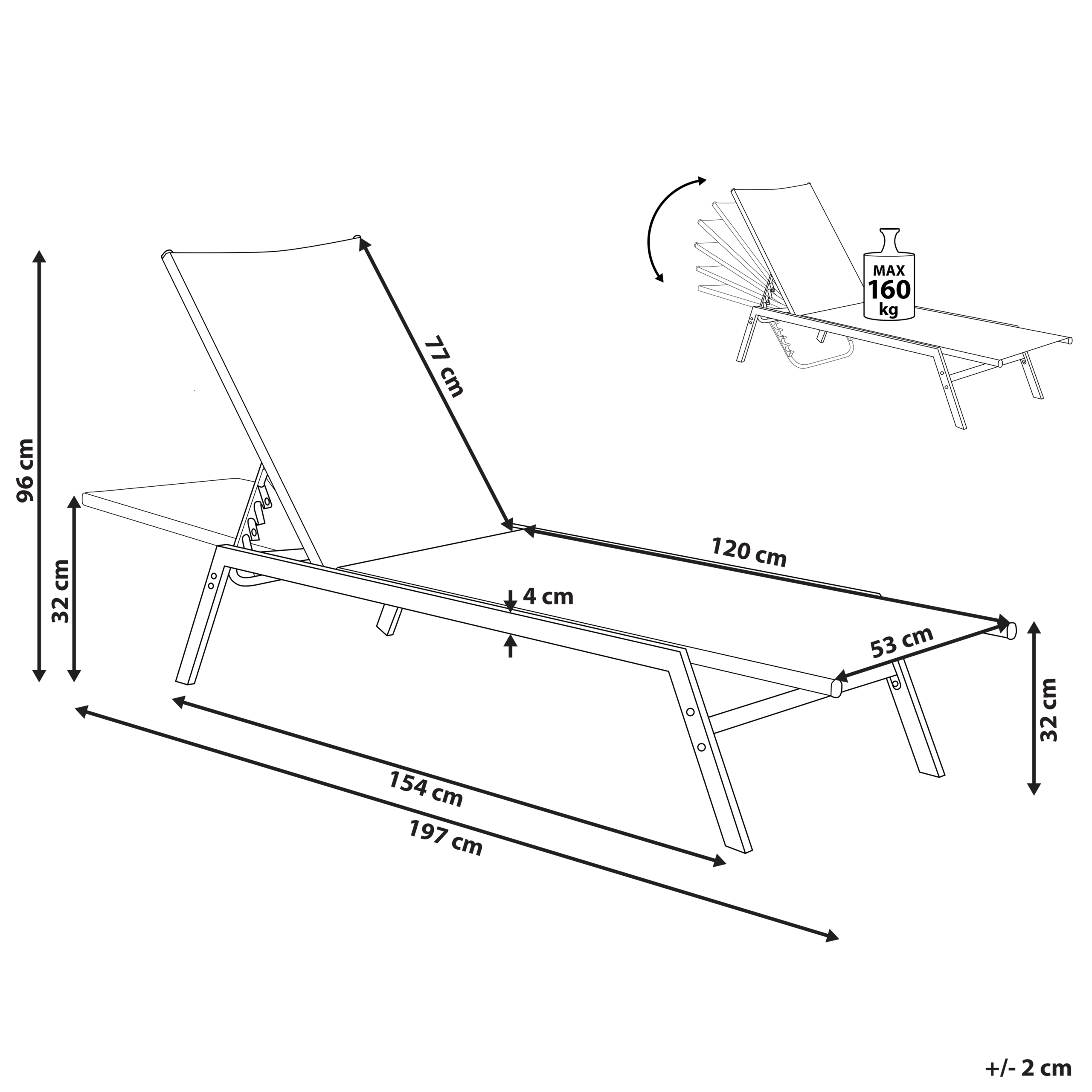 Lepotuoli puutarhaan. Rentoudu tyylikkäästi puutarhassasi tai parvekkeellasi tällä aurinkotuolilla. Vankasta ja kestävästä jauhemaalatusta teräksestä valmistettu runko takaa vakauden, ja miellyttävän tuntuisesta tekstiilikuidusta valmistettu istuin takaa mukavuuden. Kuuteen eri asentoon säädettävä selkänoja on helppo asettaa tarpeitasi vastaavaan asentoon. Aurinkotuolin minimalistinen mutta moderni muotoilu saa sen sulautumaan täydellisesti moniin erityylisiin ulkotiloihin.