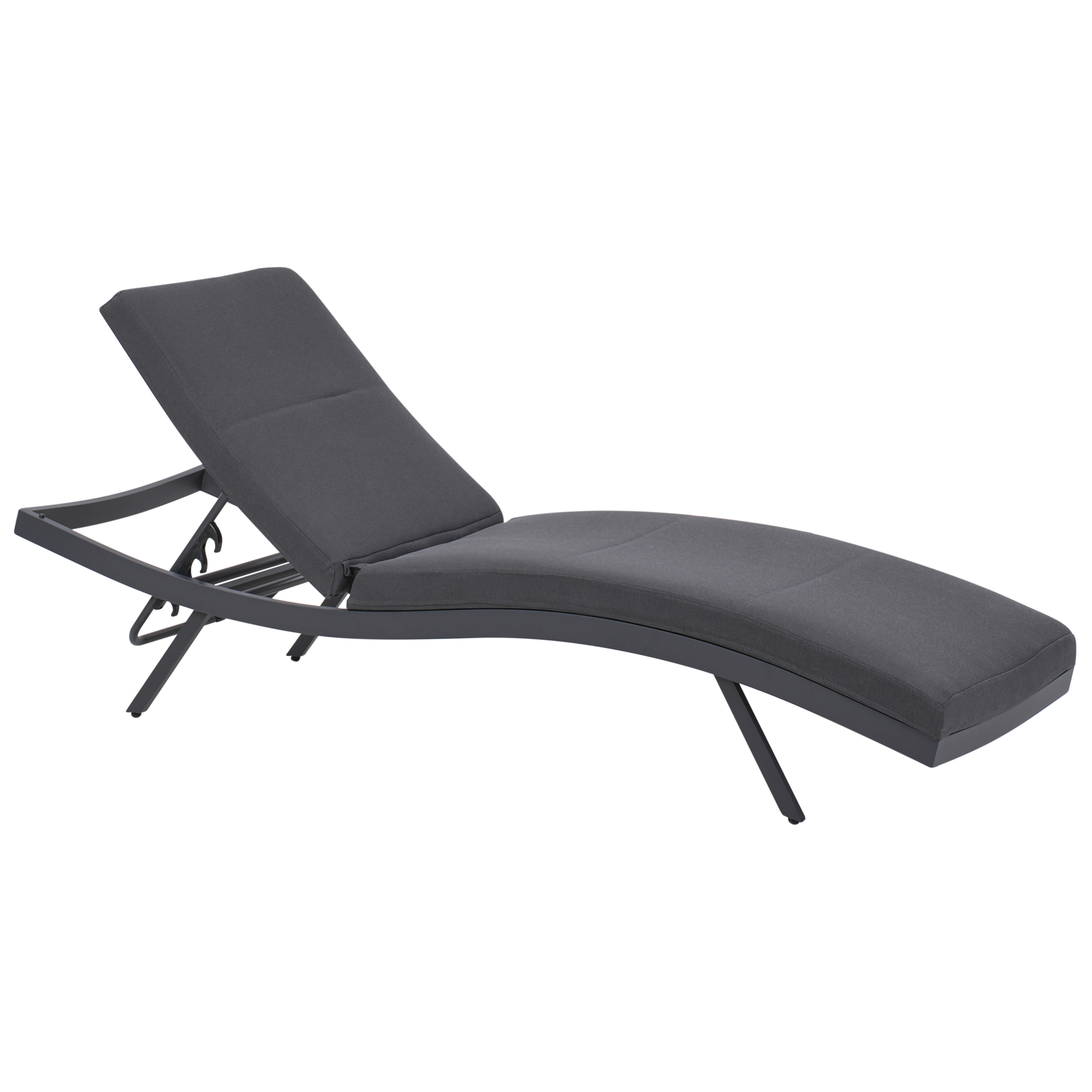 Moderni aurinkotuoli säädettävällä selkänojalla. Tämä moderni, kallistettava aurinkotuoli tarjoaa täydellisen paikan rentoutua ja nauttia kesäpäivistä auringossa. Neljään asentoon säädettävä selkänoja mahdollistaa säätämisen tarpeen mukaan, joten voit vaihtaa auringonpalvonnasta kirjan lukemiseen käden käänteessä. Kaareva muoto ja paksut, nopeasti kuivuvalla vaahtomuovilla täytetyt tyynyt tekevät siitä erittäin mukavan. Kestävä musta alumiinirunko takaa vakauden ja pitkäikäisyyden sekä täydentää grafiitinharmaita tyynyjä kauniisti.