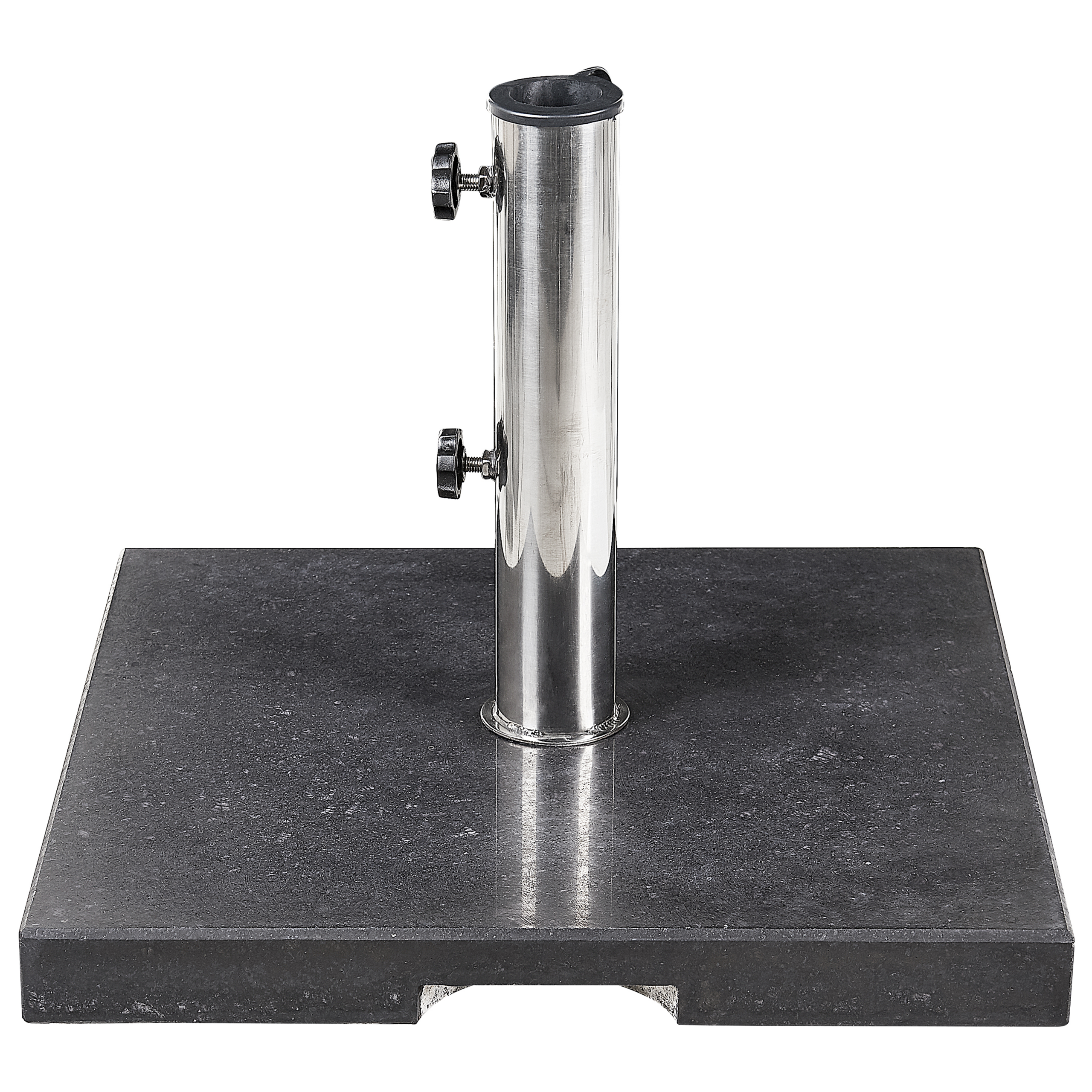Neliskulmainen aurinkovarjon jalka. Tällä aurinkovarjon jalalla varmistat, että aurinkovarjosi pysyy pystyssä tuulisemmallakin säällä. Se on valmistettu kestävästä ja korkealaatuisesta graniitista, joten se ei vaadi päivittäistä ylläpitoa. Lisäksi jalusta kestää korroosiota, vettä sekä UV-säteilyä, joten se sopii loistavasti mihin tahansa ulkotilaan. Kokonsa ansiosta sitä voidaan käyttää niin parvekkeella kuin terassillakin. Sen ruostumattomasta teräksestä valmistettu tanko on varustettu puristimella, joka on mahdollista säätää aurinkovarjon tangon halkaisijaan sopivaksi.
