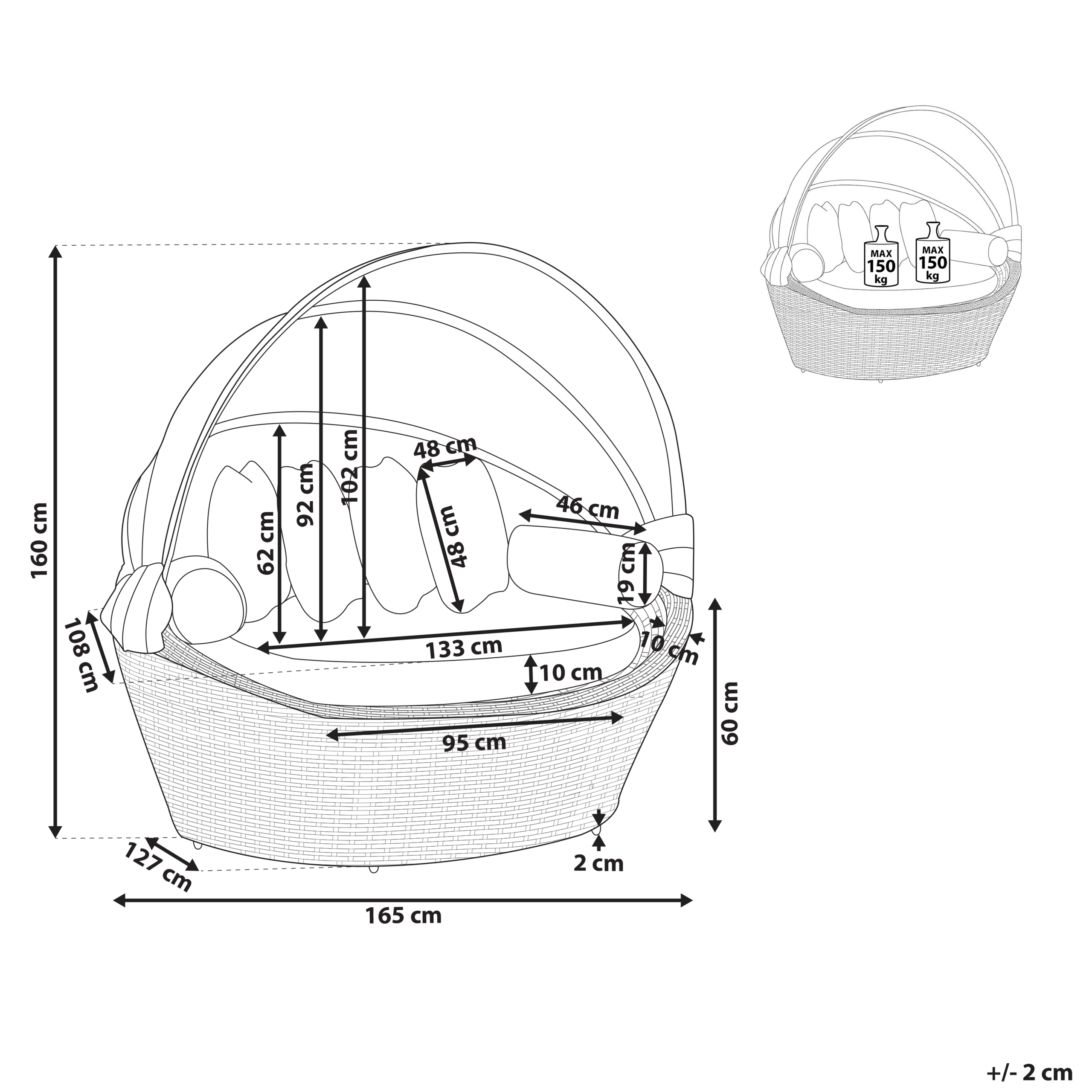 Ominaisuudet: Loistava paikka rentoutua, Modernia tyyliä terassille ja puutarhaan, Luotettava työn laatu, Helppohoitoiset ja kestävät materiaalit, UV-kestävyys 5 (ISO 105-B02), Irrotettavat päälliset, Tukeva ja kestävä runko