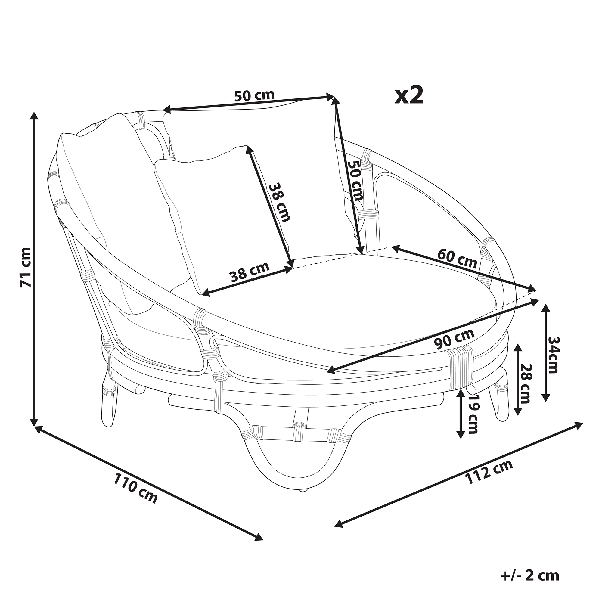 Boheemit punotut aurinkovuoteet pehmusteilla. Nauti ylellisyydestä näillä kauniilla aurinkovuoteilla. Niiden rottinkirungot on suunniteltu kestävä eleganssi mielessä pitäen, ja muotoilunsa ansiosta ne sopivat saumattomasti niin boho-tyylisiin kuin perinteisiinkin sisustuksiin. Mukana tulevat beiget istuin- ja selkätyynyt on suunniteltu mukavuutta ajatellen, joten ne tarjoavat täydelliset puitteet rentoutumiseen. Irrotettavat päälliset helpottavat ylläpitoa, ollen samalla kestäviä. Kohenna rentoutumiskokemustasi näillä ainutlaatuisilla aurinkovuoteilla.