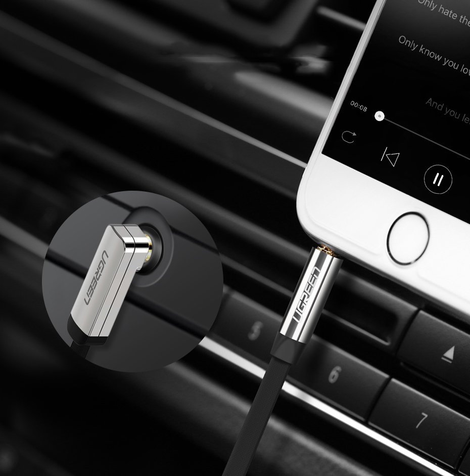 AUX-äänikaapeli, kulmaliitin, 3,5 mm, 0,5 m, musta