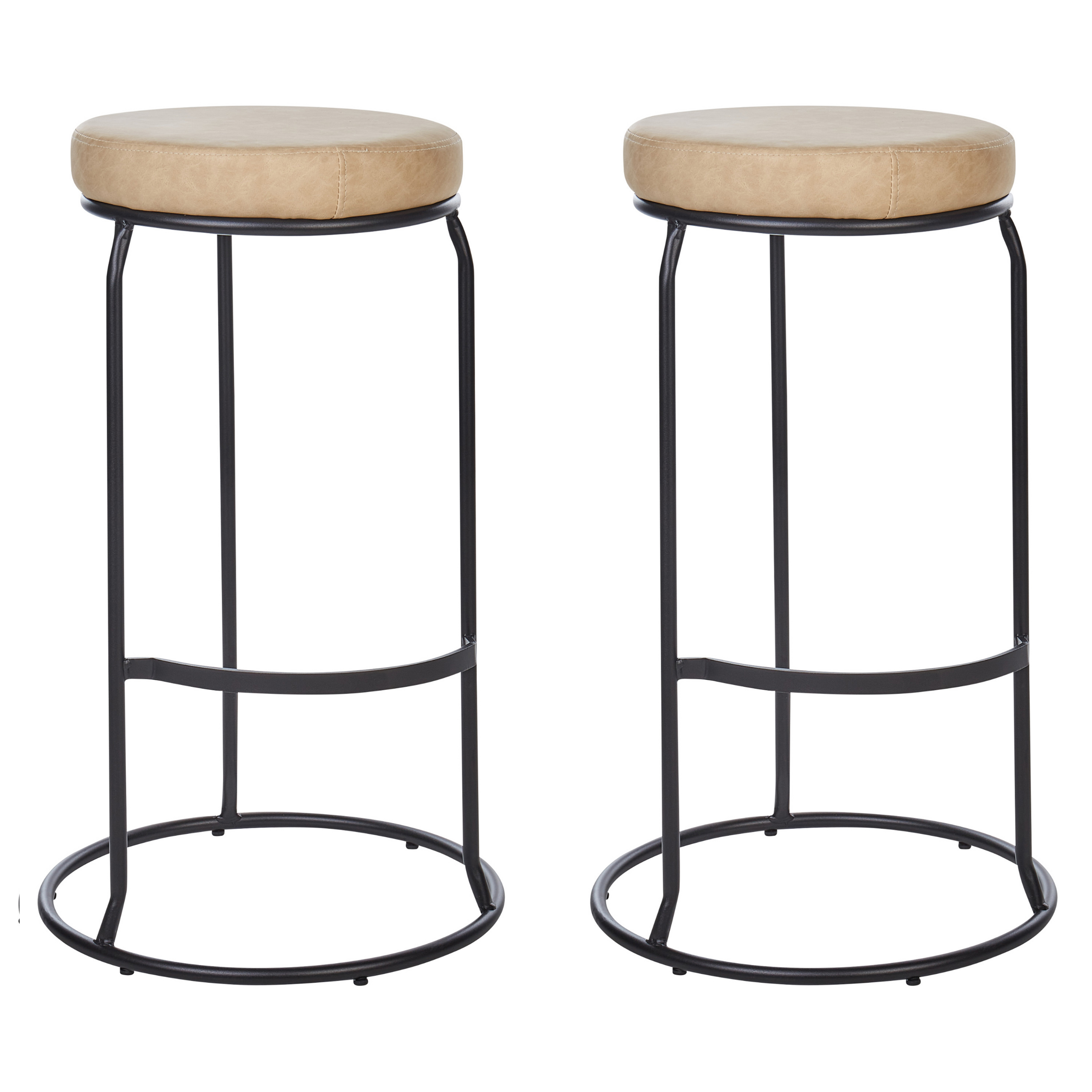 Retrotyylinen baarijakkarasetti. Muunna keittiö tai ruokailutila kahden baarijakkaran setillä. Hienostuneesti muotoilluissa jakkaroissa on tyylikäs musta teräsrunko, joka takaa sekä kestävyyden että tyylin. Lisäksi niissä on suojaavat jalkatulpat, joiden ansiosta lattia pysyy naarmuttomana. Korkealaatuisella keinonahalla verhoillut istuimet tarjoavat ylellisen istumakokemuksen, kohottaen samalla vaivattomasti tilan ilmettä. Ne sopivat erinomaisesti sekä keittiöön että ruokailutilaan, täydentäen mitä tahansa sisustusta retrotyylillä.